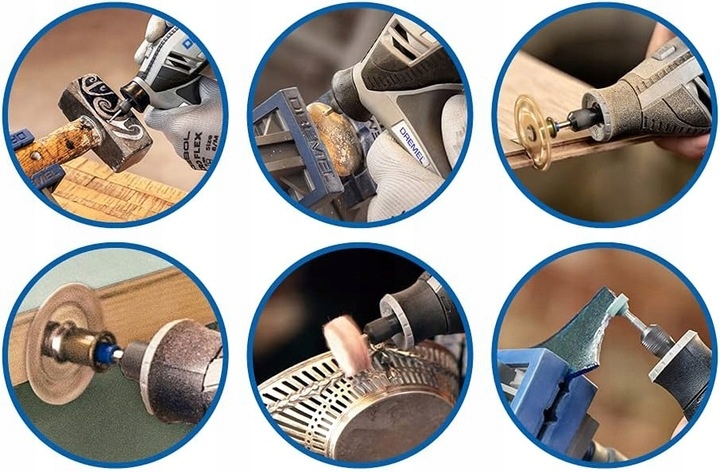 Универсальный инструмент Dremel представляет собой высокий точный инструмент, который можно использовать для точной и сложной работы. Широкий ассортимент аксессуаров и стартеров Dremel облегчает выполнение целого ряда различных работ, таких как: шлифование с абразивной облицовками, резьба, гравировка, нащание, резание, очищение и полировка.