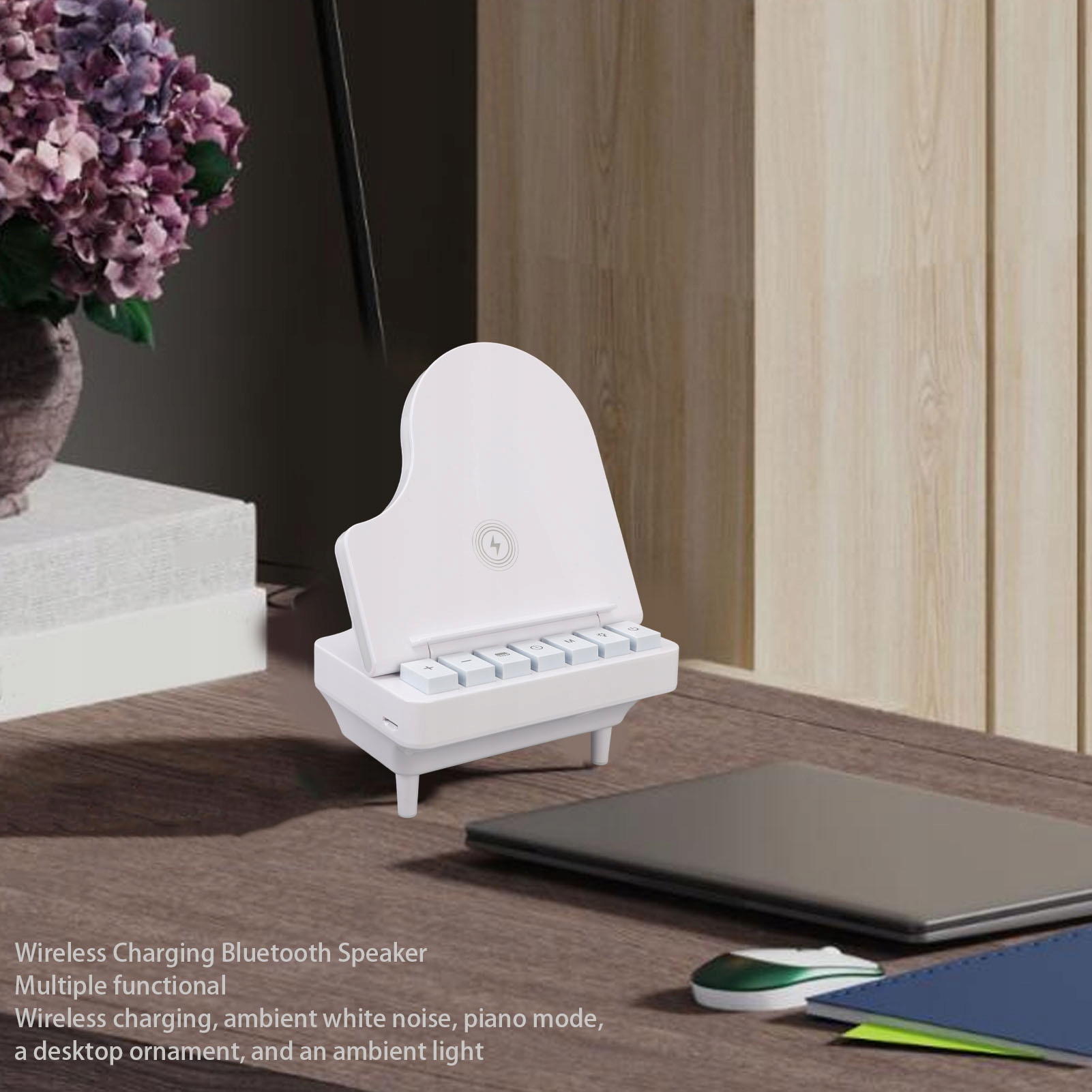 1. Многофункциональность: это беспроводное зарядное устройство для динамика 3 в 1 имеет множество функций, включая беспроводную зарядку, динамик Bluetooth, окружающий белый шум, режим фортепиано, украшение рабочего стола и окружающее освещение. 2. Встроенный аккумулятор: благодаря встроенному аккумулятору большой емкости 2000 мАч вы можете взять его с собой на улицу и использовать в качестве портативного музыкального динамика, идеально подходящего для кемпинга или пикников на открытом воздухе. 3. Идеальный звук: мощный динамик мощностью 10 Вт обеспечивает подлинное воспроизведение звука, высокую точность, большой динамический диапазон и обеспечивает выдающиеся возможности обработки звука. 4. Многократная зарядка: эта зарядная станция предлагает четыре разъема для беспроводной зарядки, в том числе два для мобильных телефонов, один для наушников и один для часов, что позволяет одновременно заряжать несколько устройств. 5. Стильный дизайн фортепиано: имеет элегантный дизайн фортепиано, который значительно улучшает ваш вкус, обеспечивая комфортную среду и улучшая атмосферу вашего пространства.
