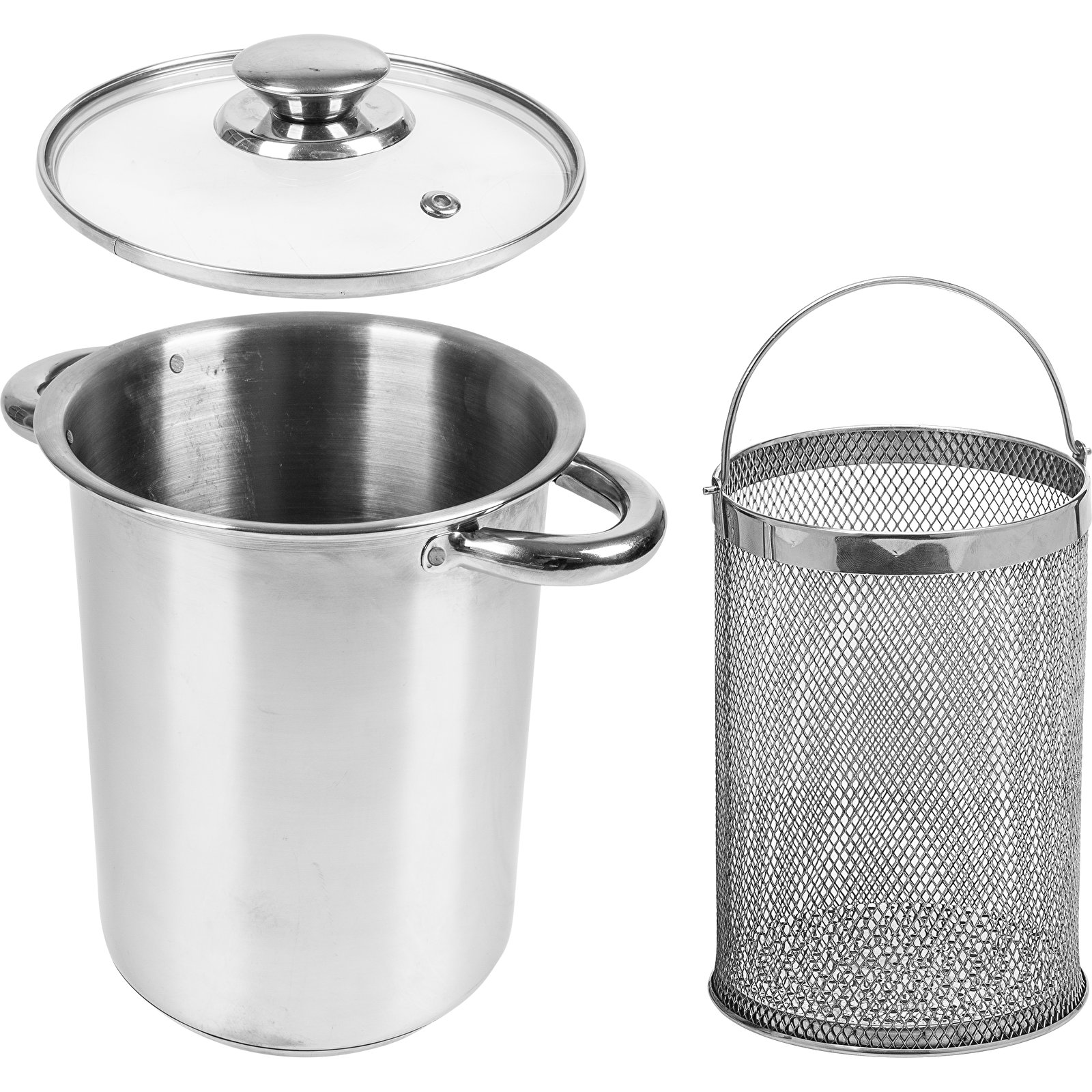 Универсальная, многофункциональная кастрюля с корзиной, крышкой и ветчинницей объемом до 1,5 кг - для приготовления ветчины на пару, жарки картофеля фри, приготовления пасты, спагетти, спаржи - нержавеющая сталь, 4 л