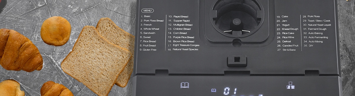 Просто залейте ингредиенты, выберите соответствующую программу из практического графика на обложке и запустите процесс заминки или выпечки, используя сенсорный дисплей. Если вы хотите, чтобы ваш любимый хлеб был готов в определенное время, таймер контролирует процесс выпечки и держит тепло хлеба в течение 60 минут до первого сокращения благодаря функции технического обслуживания тепла.