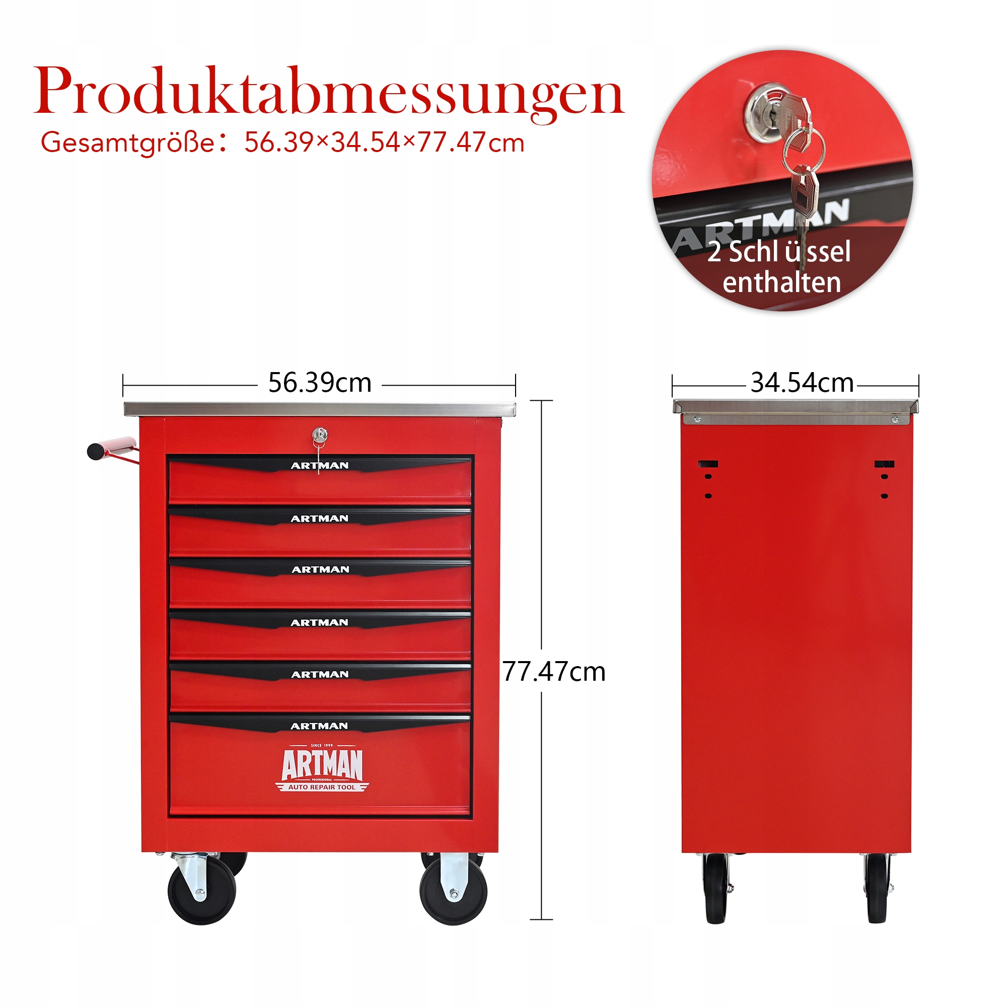 Многофункциональная тележка для инструментов с 6 ящиками и колесами.