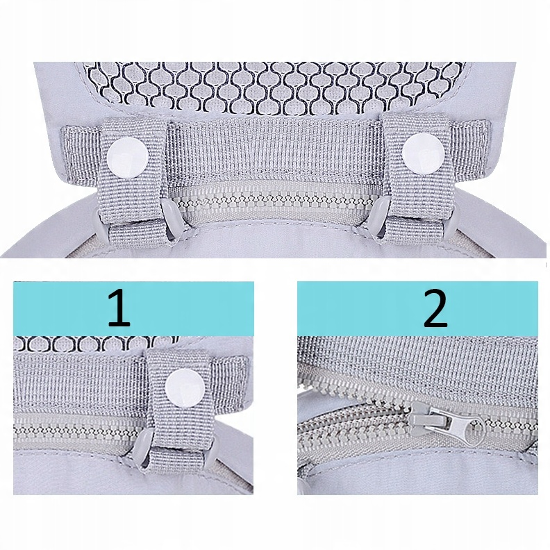 Рюкзак-кенгуру ALEBAO состоит из двух основных элементов (рюкзак + поясной ремень), которые можно использовать вместе или по отдельности в зависимости от возраста ребенка и наших потребностей. Использование комбинации обоих этих элементов позволяет удобно и комфортно пользоваться автолюлькой, делая ее не только устойчивой и безопасной для ребенка, но и максимально разгружает все отделы позвоночника родителя. Дополнительно поясной ремень связан с двойной защитой в виде кнопок (№1 на фото) и молнии. (№ 2)