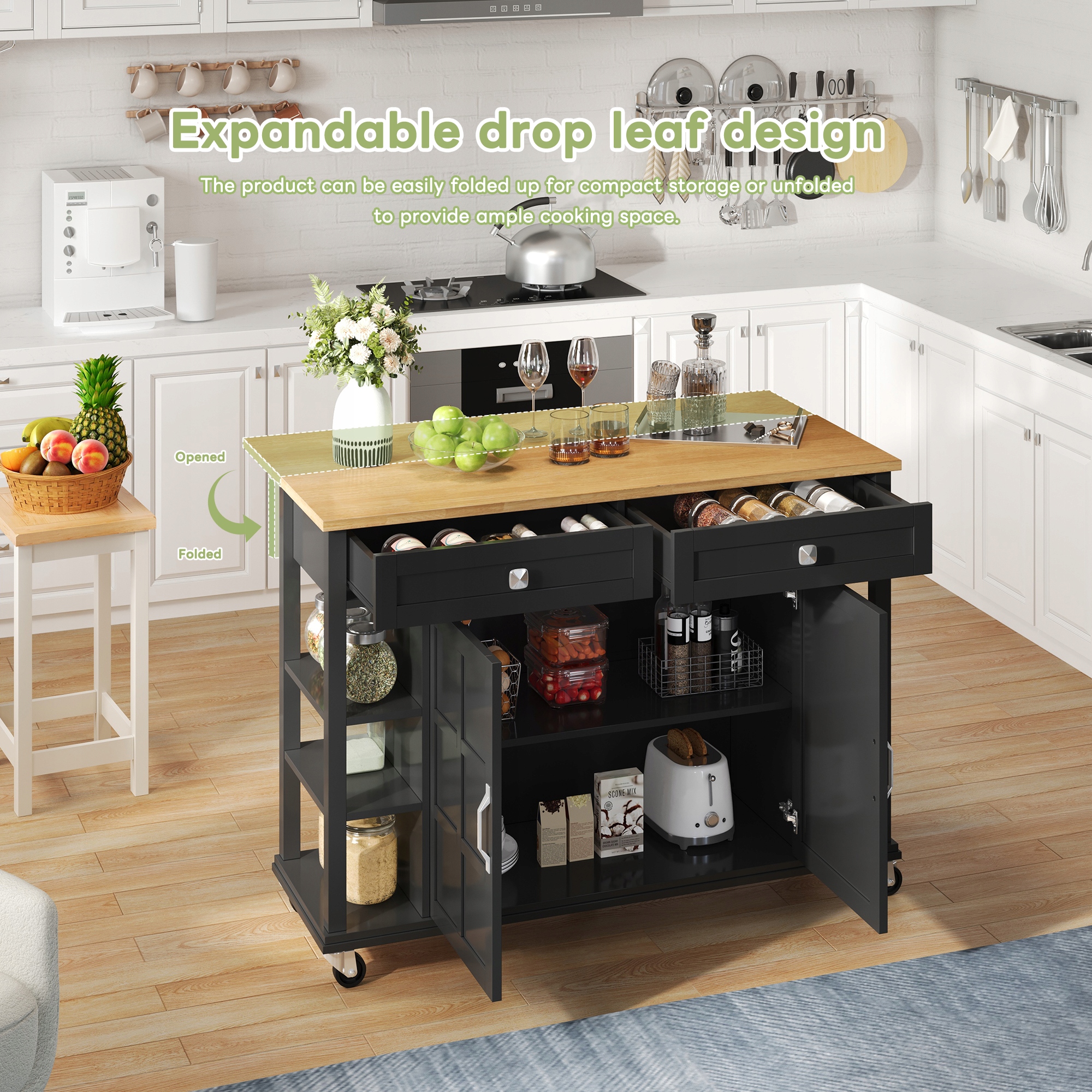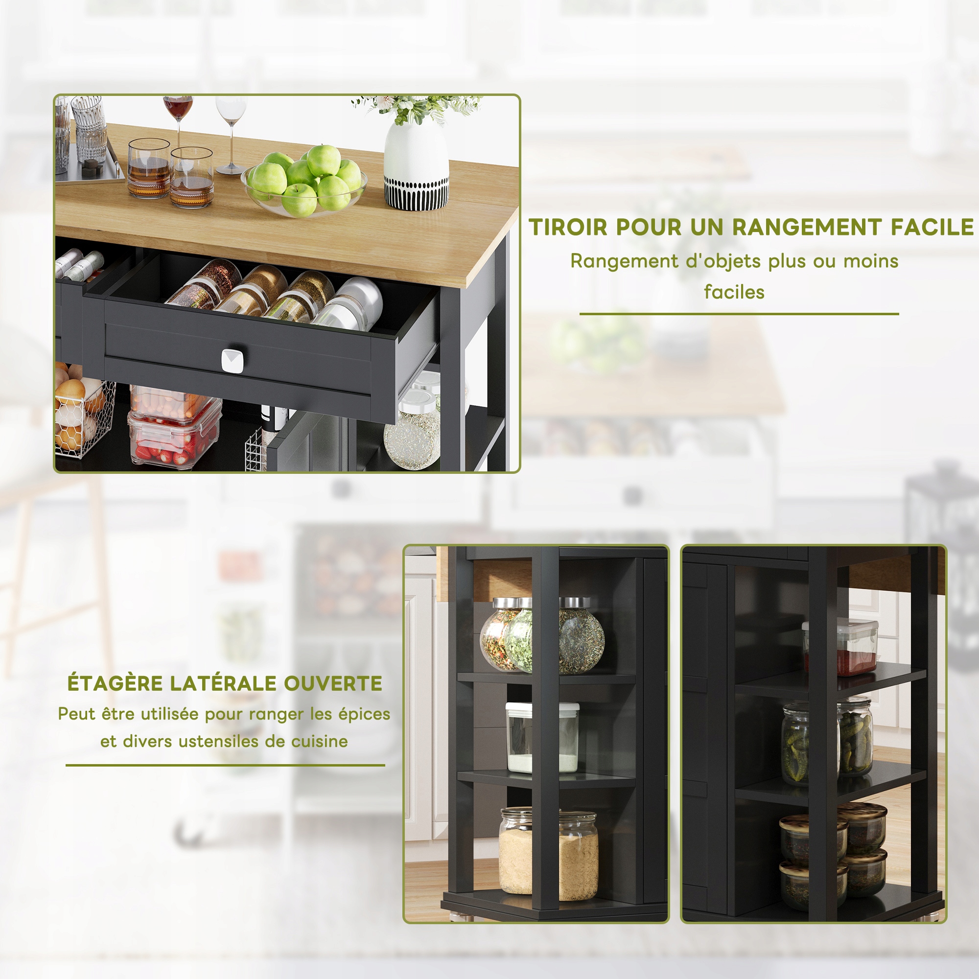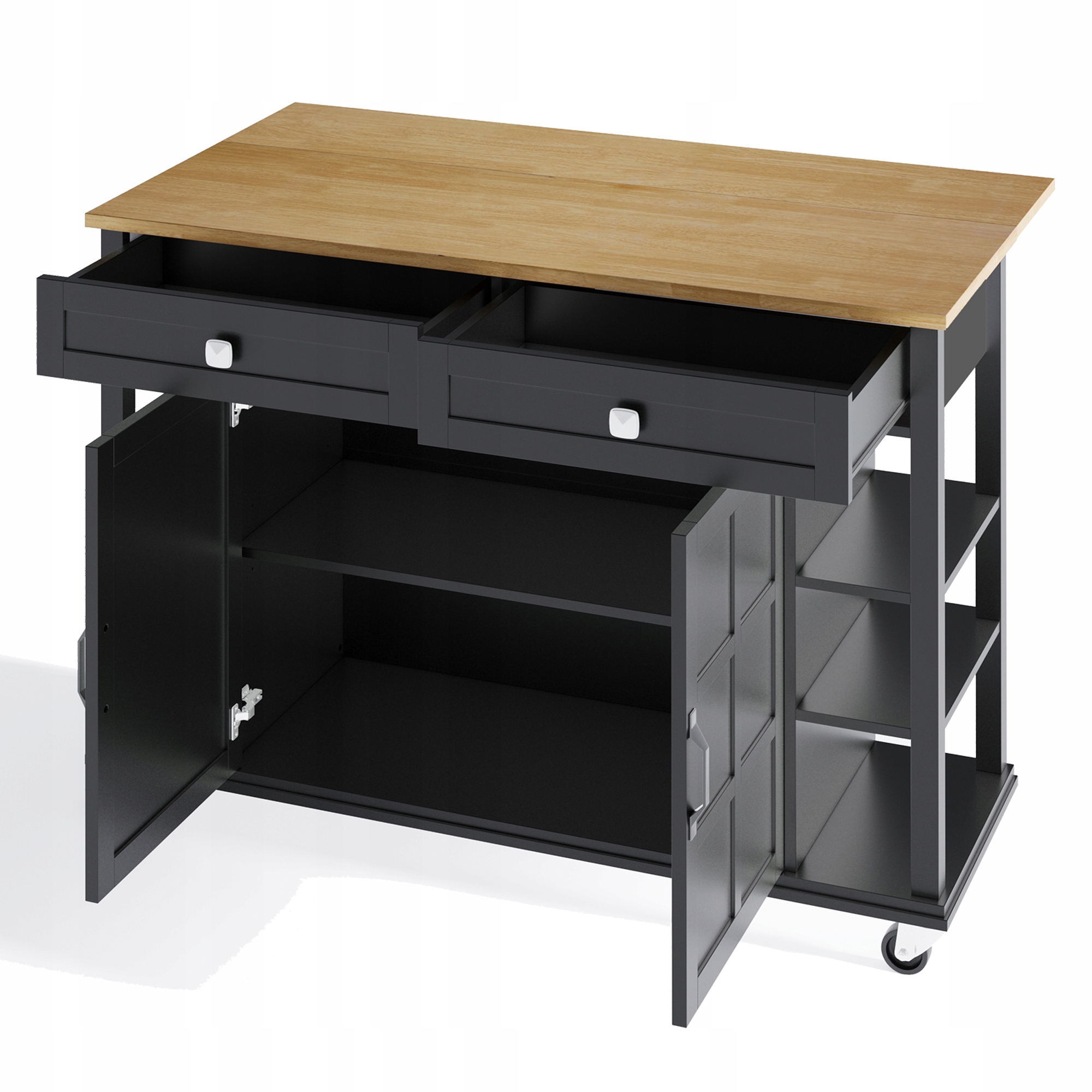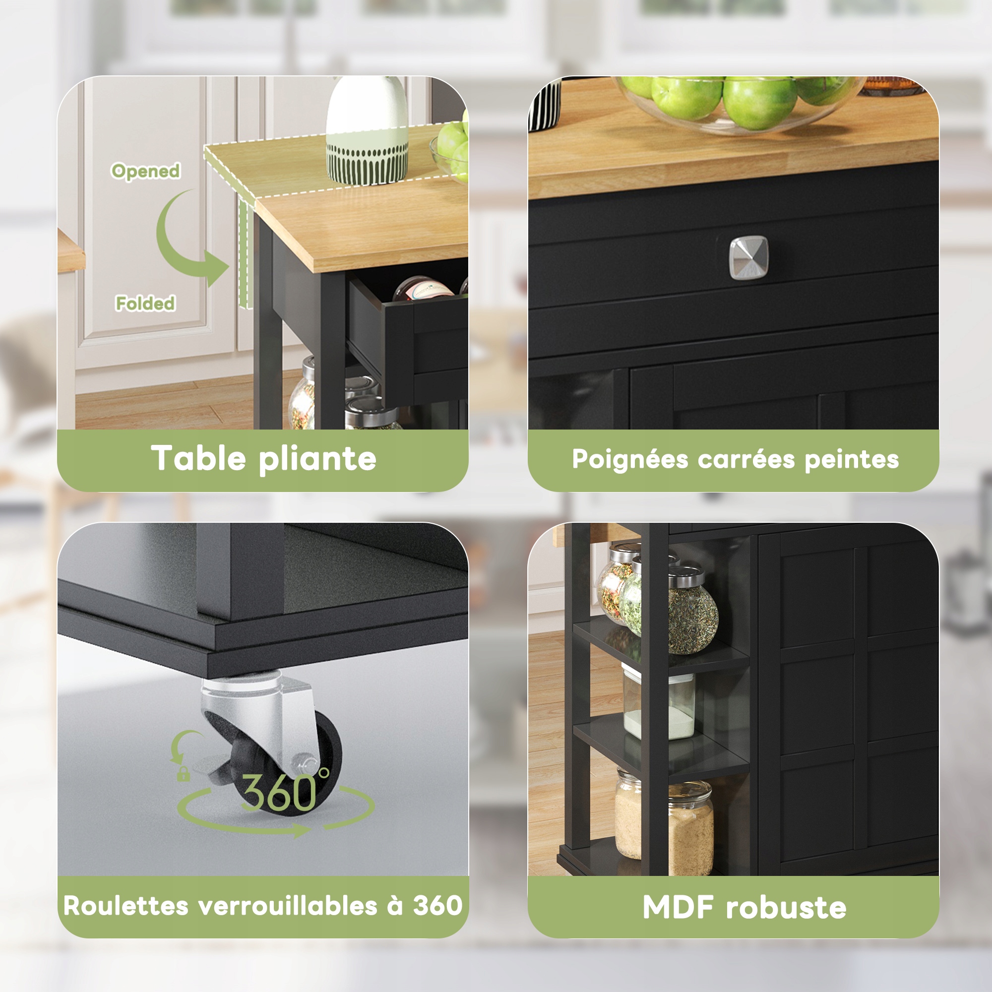 Многофункциональная кухонная коляска со складывающейся топом, сгибание -out 120 × 65 см, 2 ящики, просторное место для хранения, на колесах - стильный тележка для подачи на кухню, столовую и гостиную