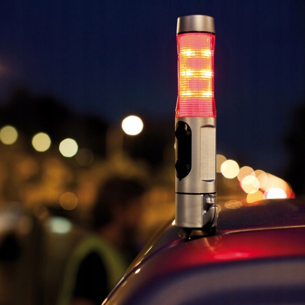 Безопасный фонарик, корпус из ABS, 1 белый светодиод и 9 красных мигает на боковой стороне, резак полосы движения, защитный молот, магнитная стойка, чтобы прикрепить к автомобильному корпусу