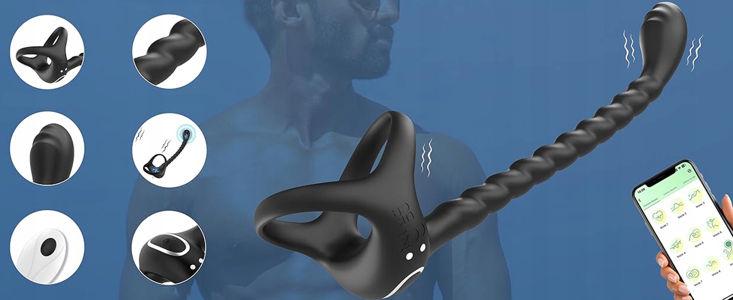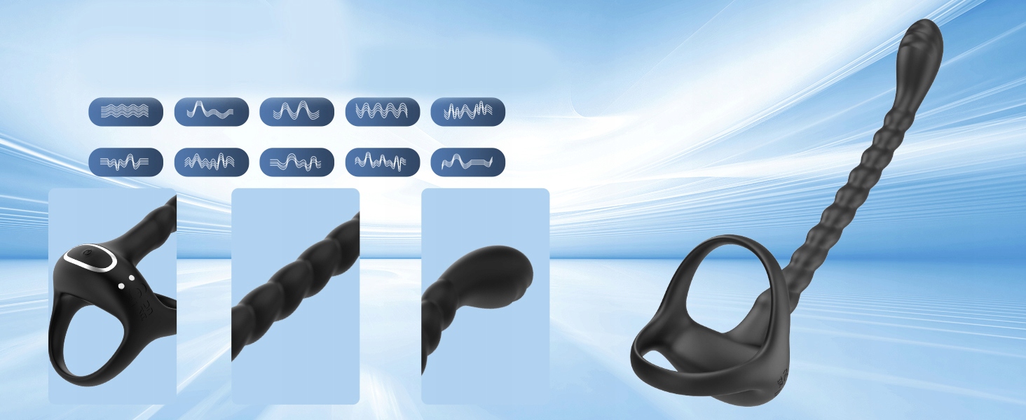 ➡ Вибратор простаты для мужчин соединяет вибрирующее кольцо с половым членом, стимулятором простаты и анальным вибратором.