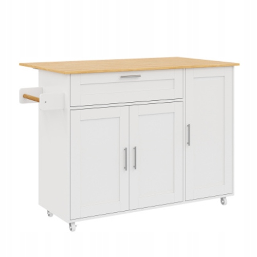БОЛЬШОЙ МОБИЛЬНЫЙ КУХОННЫЙ СТОЛ НА КОЛЕСАХ СО СКЛАДНОЙ ВЕРХНЕЙ, ШКАФОМ И ПОЛКАМИ