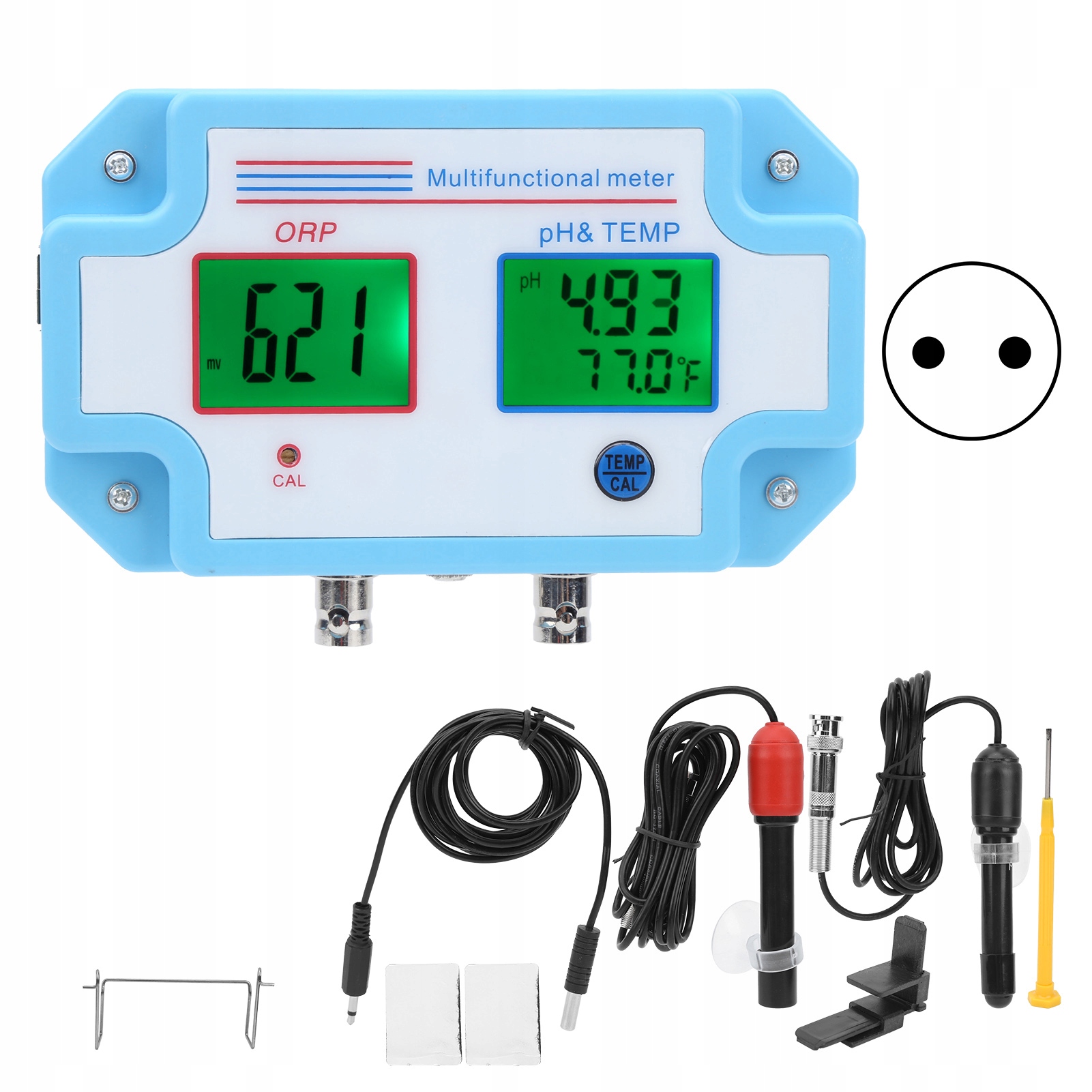 Функция: 1. Большой экран отображает два параметра pH и ORP одновременно.
