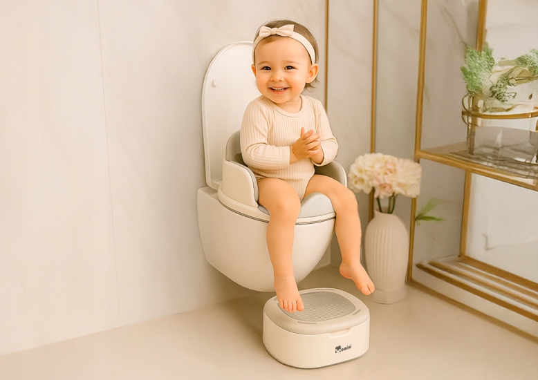 Softi Beige — это больше, чем просто обычный горшок. Три функции в одном компактном дизайне: горшок с мягким сиденьем, чехол на сиденье унитаза и устойчивая платформа. Идеально подходит от первых попыток сесть, самостоятельного посещения туалета, мытья рук или помощи на кухне.