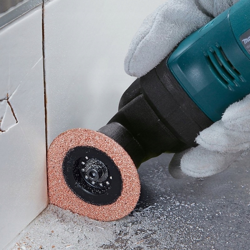 - При оснащении соответствующими насадками позволяет делать пазы в дереве, резать керамические элементы, резать по кромкам и углам, шлифовать в углах и труднодоступных местах, удалять раствор и резать керамическую плитку, снимать материалы с пола и удалять силикон или замазку с оконных рам.