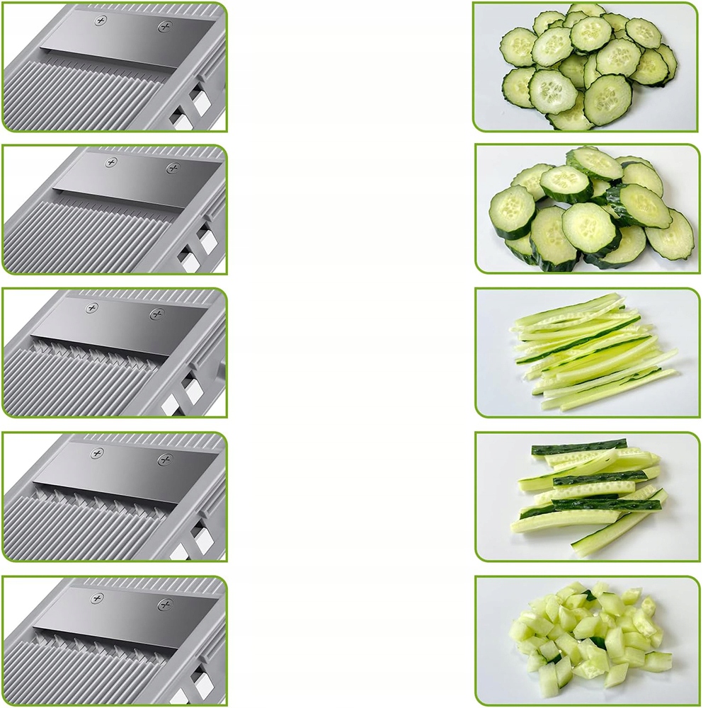 🥒 【Safe Slicer】: Safe Slicer Mandolin для каждого шеф -повара. Острые, невидимые лезвия быстро и равномерно, легко установить и чистить и могут использоваться без перчаток и замены лезвий. Это определенно улучшенная альтернатива в повседневной кулинарии.