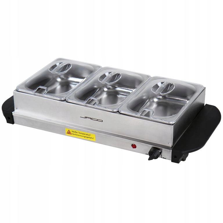 Благодаря отдельным мискам, вы можете нагреть и подавать различные блюда. Нагревательная пластина очень легкая, и благодаря ручкам ее можно легко перемещать. Несоотражные ноги обеспечивают стабильность, а прозрачные крышки защищают пищу.
