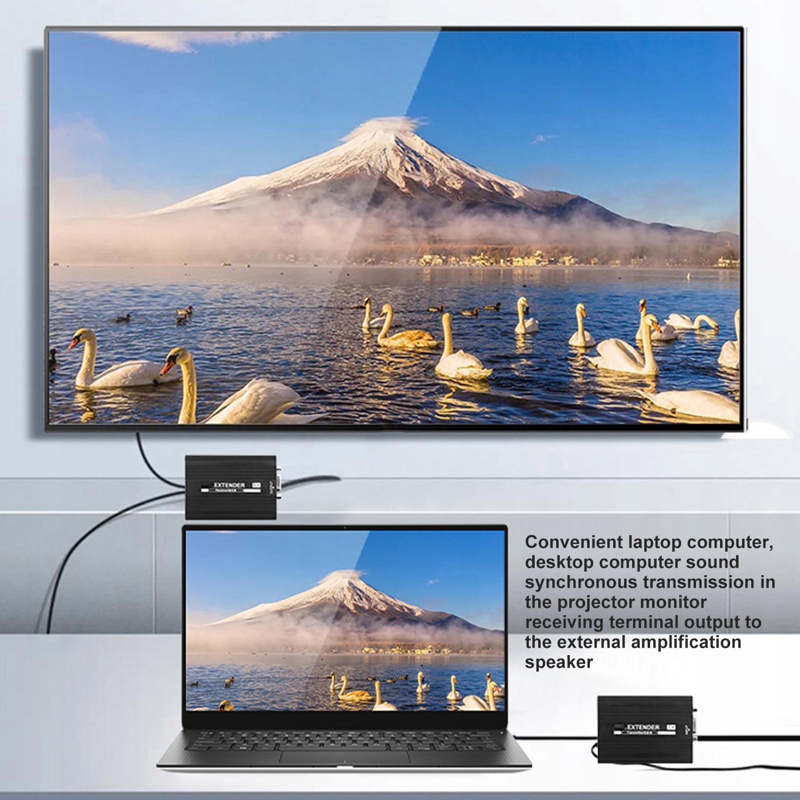 1. Большой радиус действия 492,1 фута: приемник передатчика VGA обеспечивает передачу на большие расстояния 150 м/492,1 фута, что позволяет преодолеть ограничение длины кабеля VGA, упрощает установку и подключение.