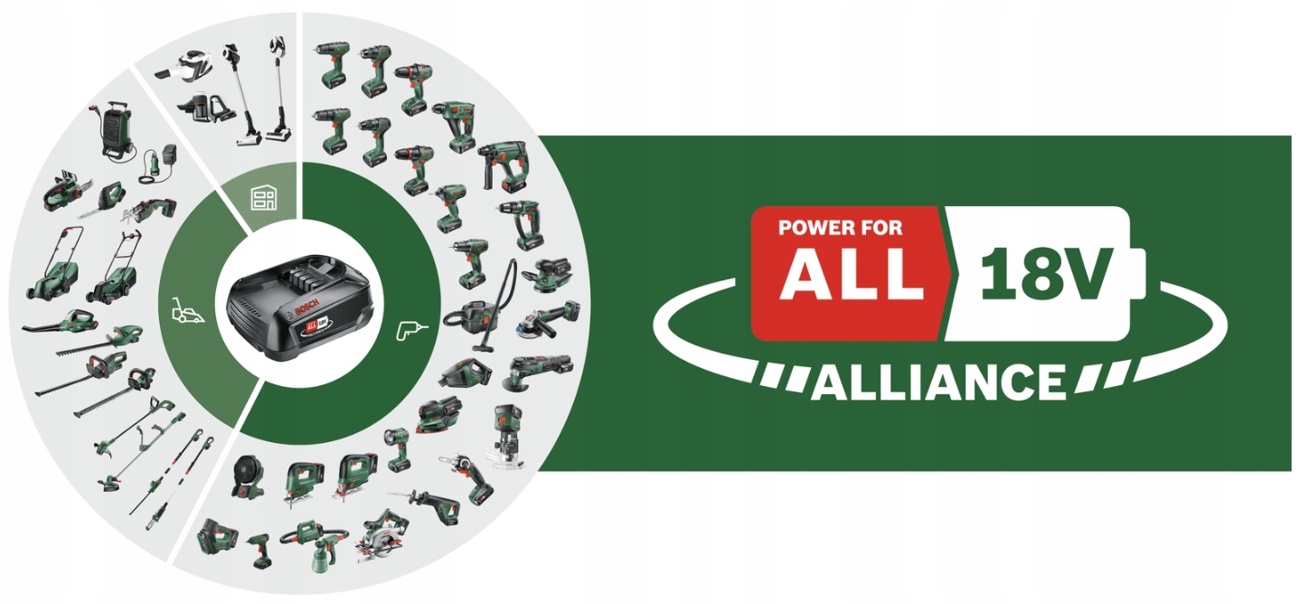 Для бурения, уборки или работы в саду. Аккумулятор Bosch POWER FOR ALL 18 В можно использовать с различными инструментами, обеспечивая быструю и легкую работу. Для дальнейшего повышения эксплуатационной гибкости аккумулятор также совместим с инструментами других партнеров POWER FOR ALL.