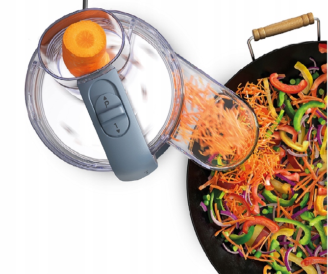 - Этот кухонный комбайн можно измельчать, нарезать, смешивать, натирать на терке и подавать прямо на тарелку, и все это он занимает настолько мало места, что его можно легко хранить на кухонном столе или в ящике.