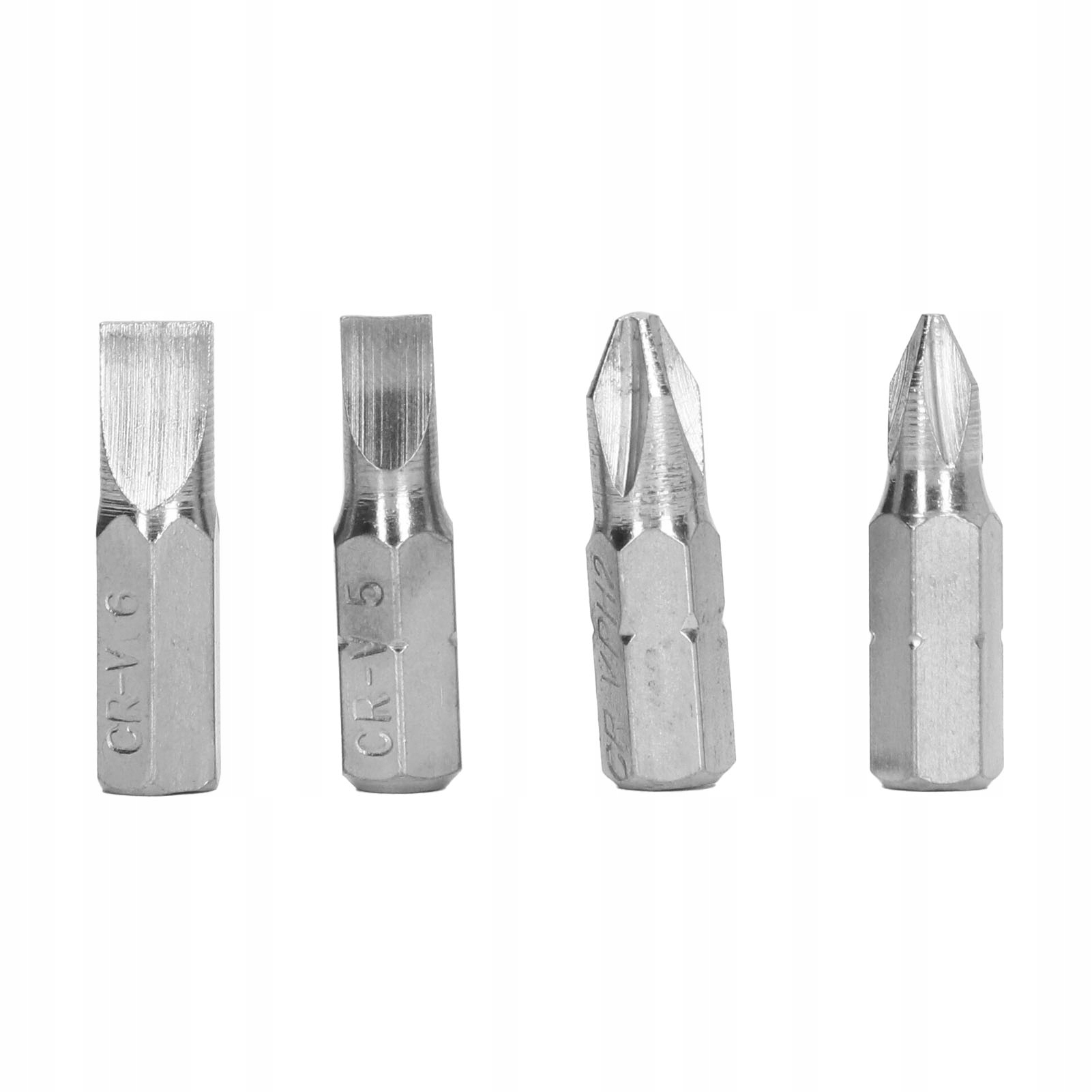 4. 4 насадки для отверток: Кроме того, доступны 4 различных насадки со шлицем 4 мм, шлицем 5 мм, крестообразным шлицем 1 и крестообразным шлицем 2 для удовлетворения всех ваших рабочих потребностей.