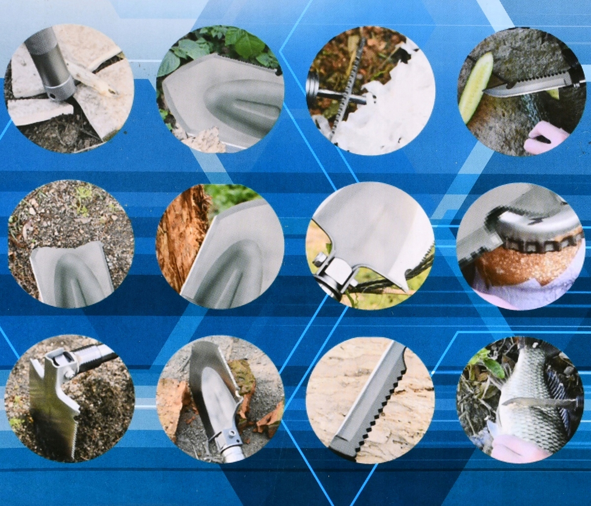 Складная лопата для выживания с 16 функциями.