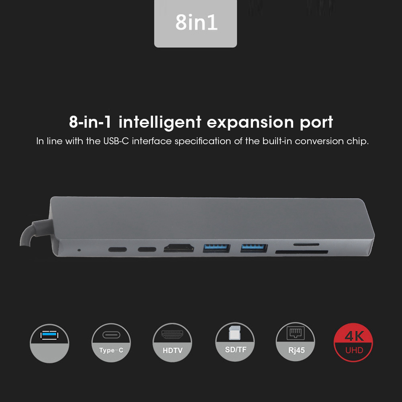 1 интеллектуальный порт расширения 8 в 1, соответствующий спецификации интерфейса USB-C встроенного преобразовательного чипа. 2. Подключи и работай, можно подключить к U-диску, жесткому диску, кнопке мыши, хранилищу, памяти, RJ45, HDIM и другим аппаратным интерфейсам. 3. Его не обременяет и с ним легче путешествовать. Этот концентратор USB-C обеспечит вам большое удобство. 4. Использование высококачественного алюминиевого сплава, процесс анодирования, он более красивый. 5, имеет хороший эффект рассеивания тепла, постоянное использование не обжигает руки, чтобы предотвратить появление отпечатков пальцев.