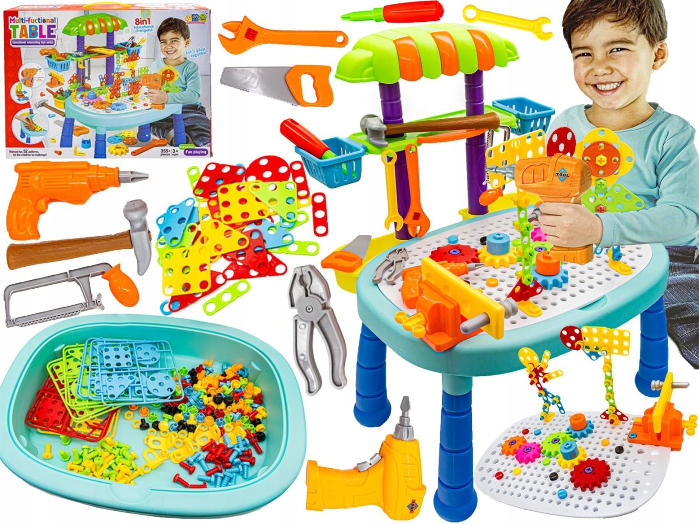 Многофункциональный стол + Инструменты, Отвертка + Креативная мозаика 355 шт. Конструктор