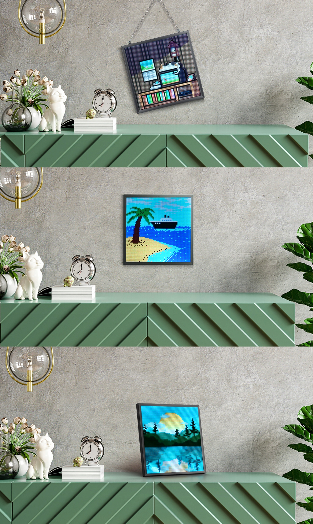 Вы можете разместить Pixoo-64 в любом месте вашего дома. Украсьте свою гостиную мультфильмами из аниме или украсьте прихожую собственной коллекцией пиксельной графики. Pixoo-64 добавит очарования любой комнате благодаря превосходной пиксельной анимации.