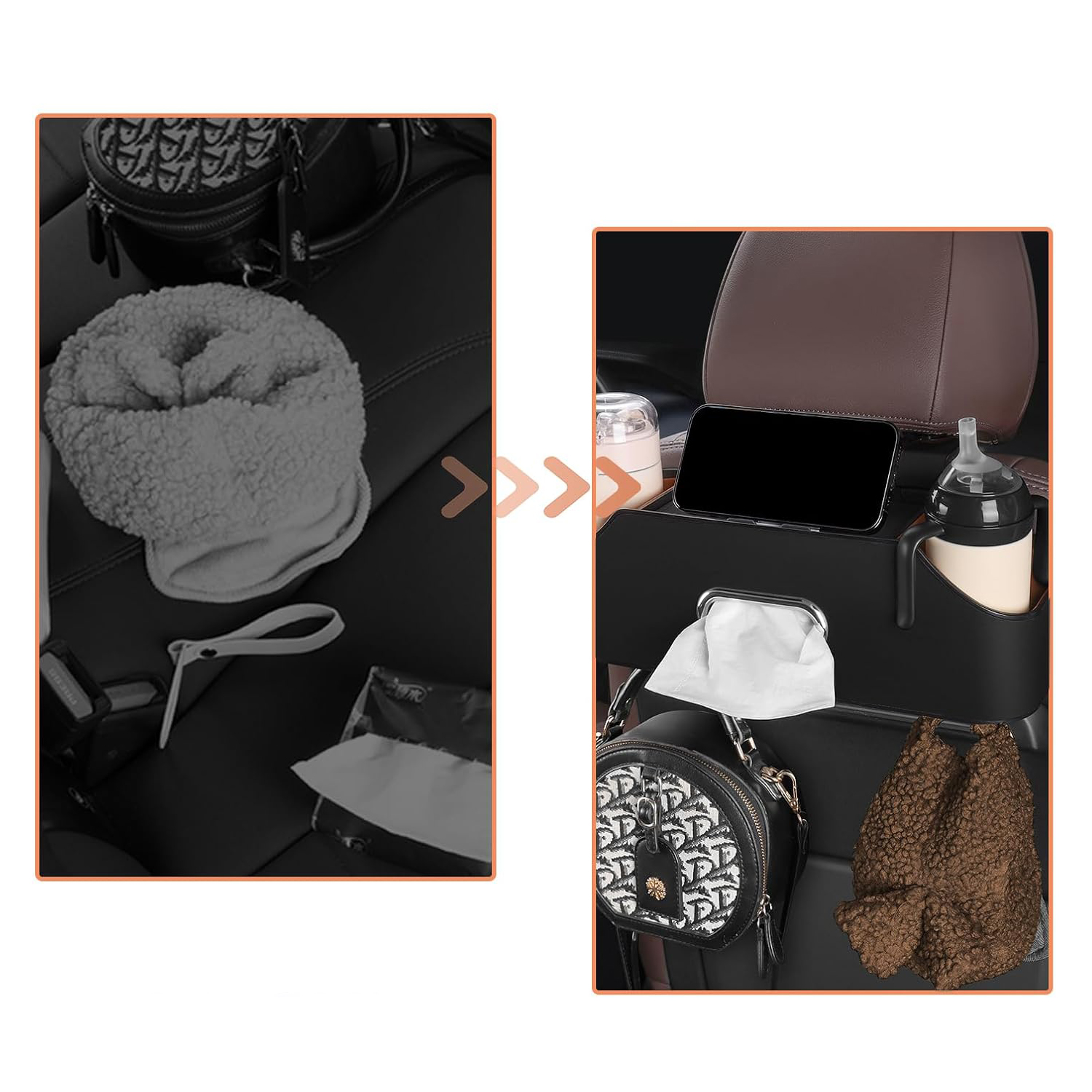 - Наш органайзер подголовника автокресла подходит для большинства транспортных средств. Car Hook, который не влияет на комфорт. li>