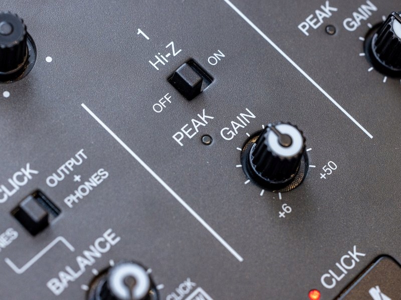 Вход 1 на R12 оснащен переключателем Hi-Z, позволяющим подключить гитару напрямую к рекордеру.