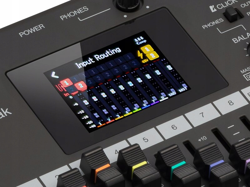 R12 также оснащен панорамой и 3-канальным эквалайзером для каждой дорожки, а также компрессором на входах 1 и 2.
