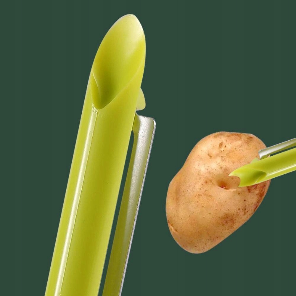 С другой стороны, объект, оснащенный лезвием для очистки фруктов и овощей и заточенной пластиковой ручки.