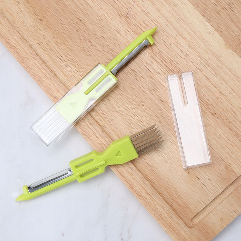 Много -государственный нож Slicer для лука лука с Peeler Shield #116