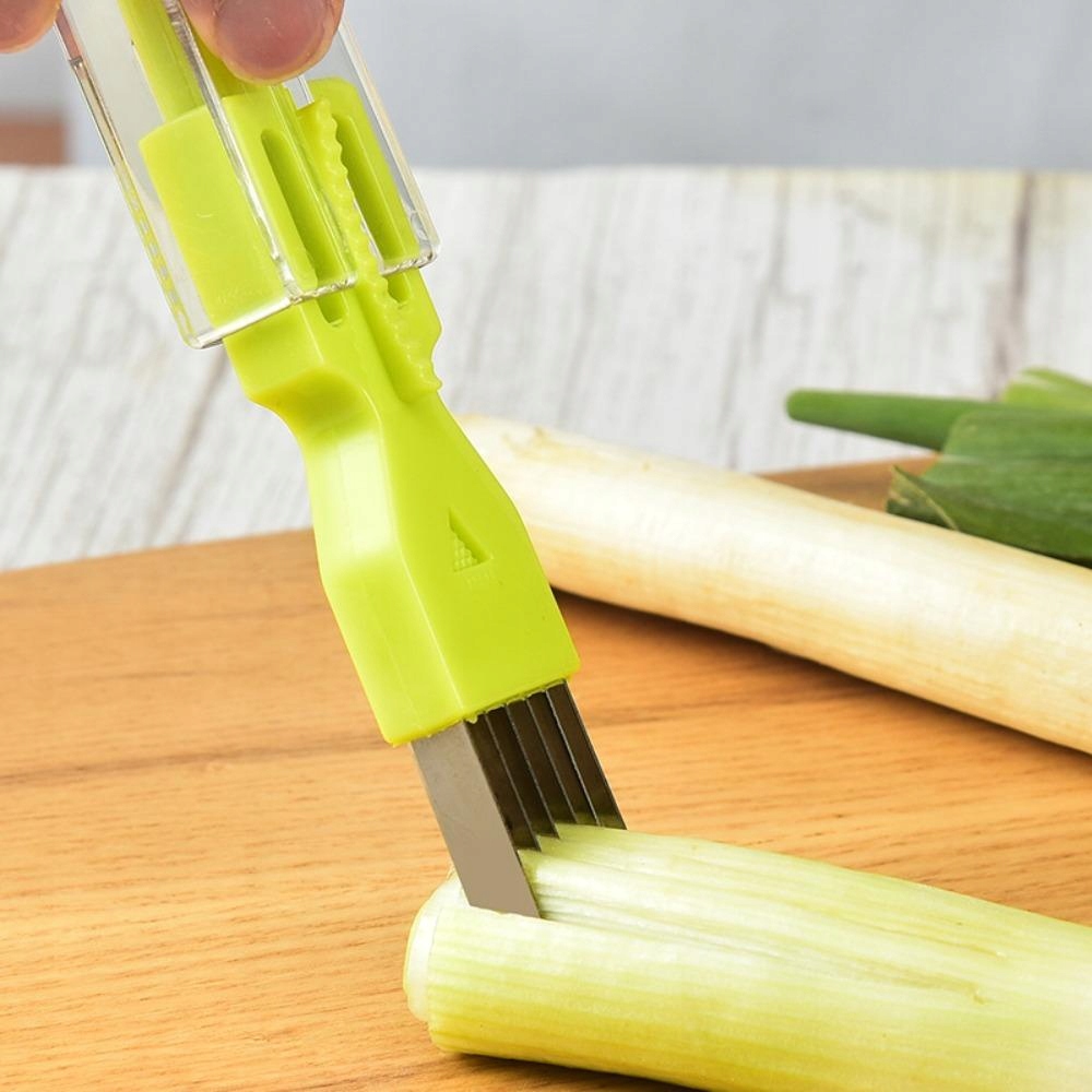 , с одной стороны, объект, оснащенный шестирядным лезвием из высококачественной нержавеющей стали, который гарантирует эффективность и долговечность. Это точный инструмент, предназначенный для быстрой и легкой резки свежих трав, лука и TP. Для небольших равных поперечных молекул и продольных полос.