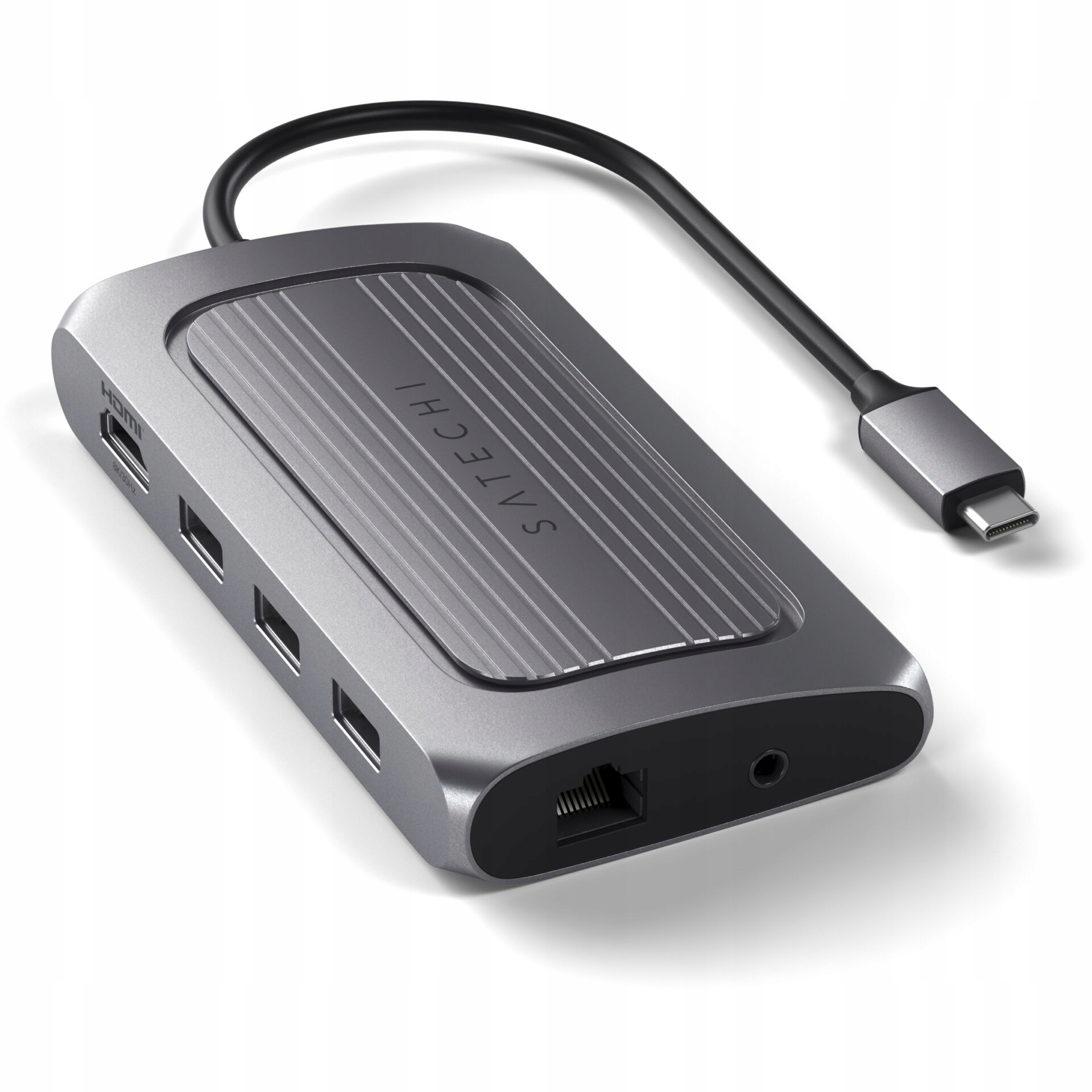 Многопортовый адаптер Satechi — многопортовый адаптер USB-C (USB-C4, 3x USB-A, 8K HDMI, Ethernet, устройство чтения карт памяти micro/SD, разъем) (серый космос)
