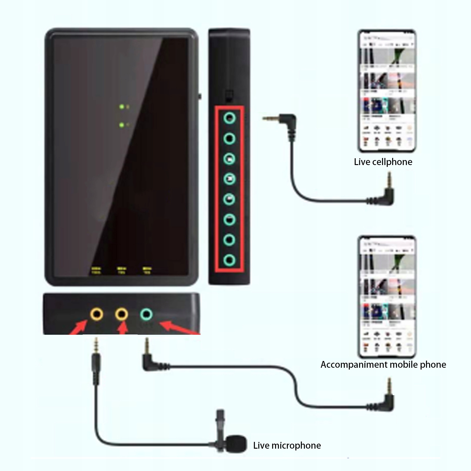 1. В общей сложности 16 выходов имеются 15 каналов для 3-й турнирной интерфейса 3,5 мм/0,1 дюйма, 1 способ выхода из интерфейса наушников. Поддержите синхронные мобильные трансляции с множеством мобильных устройств и множеством платформ, не прыгая до частоты, подходящие для малых и средних живых трансляций. Независимая интеллектуальная система обработки без запуска может эффективно блокировать текущие помехи, поэтому вы можете одновременно транслировать на различных платформах, невысокого качества звука