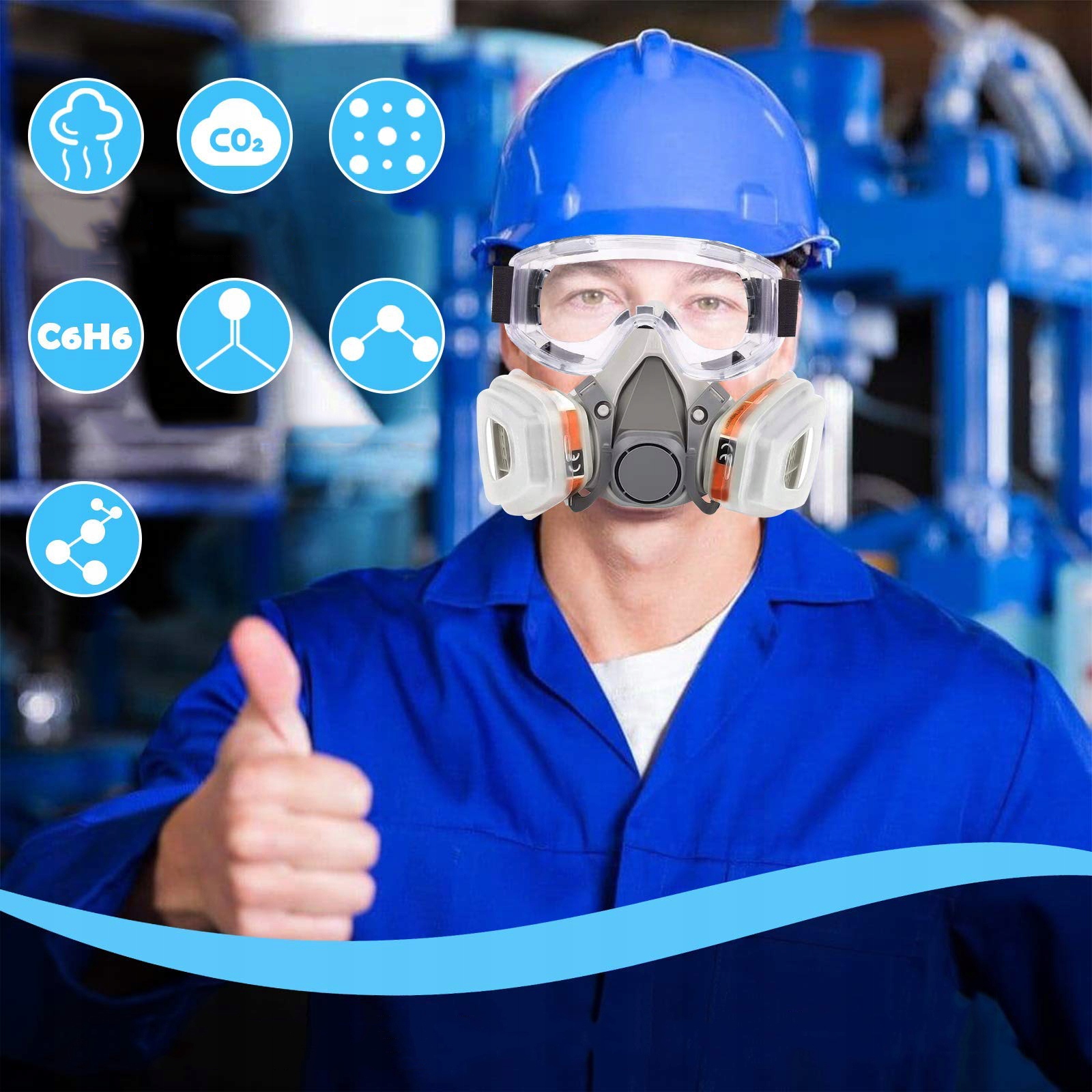 ✔️✔️ 【Широкое применение】 Эта многоразовая маска позволяет выполнять работу без частой замены. Подходит для науки, работы на открытом воздухе, пайки, железной дороги, производства, распиловки, мастерской, защиты глаз своими руками, лаборатории, бензопилы, строительства, пустыни, электриков, полевых работ, инженеров, лазеров, механической обработки, механиков и т. д. Он может предотвратить попадание частиц пыли попадание в дыхательные пути.
