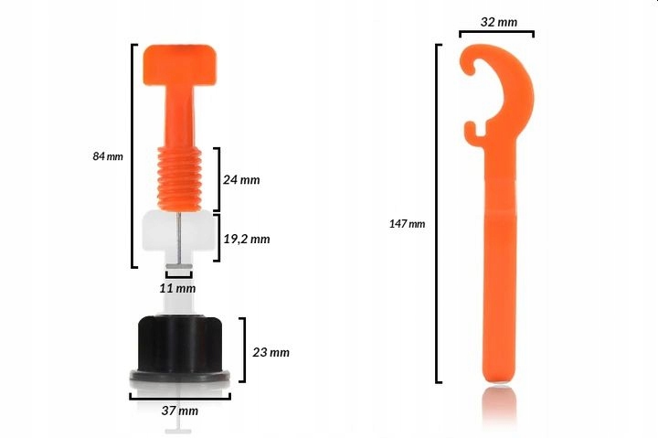 Самыми важными элементами держателя являются металлический стержень и черная гайка – они в основном выполняют выравнивание плитки.