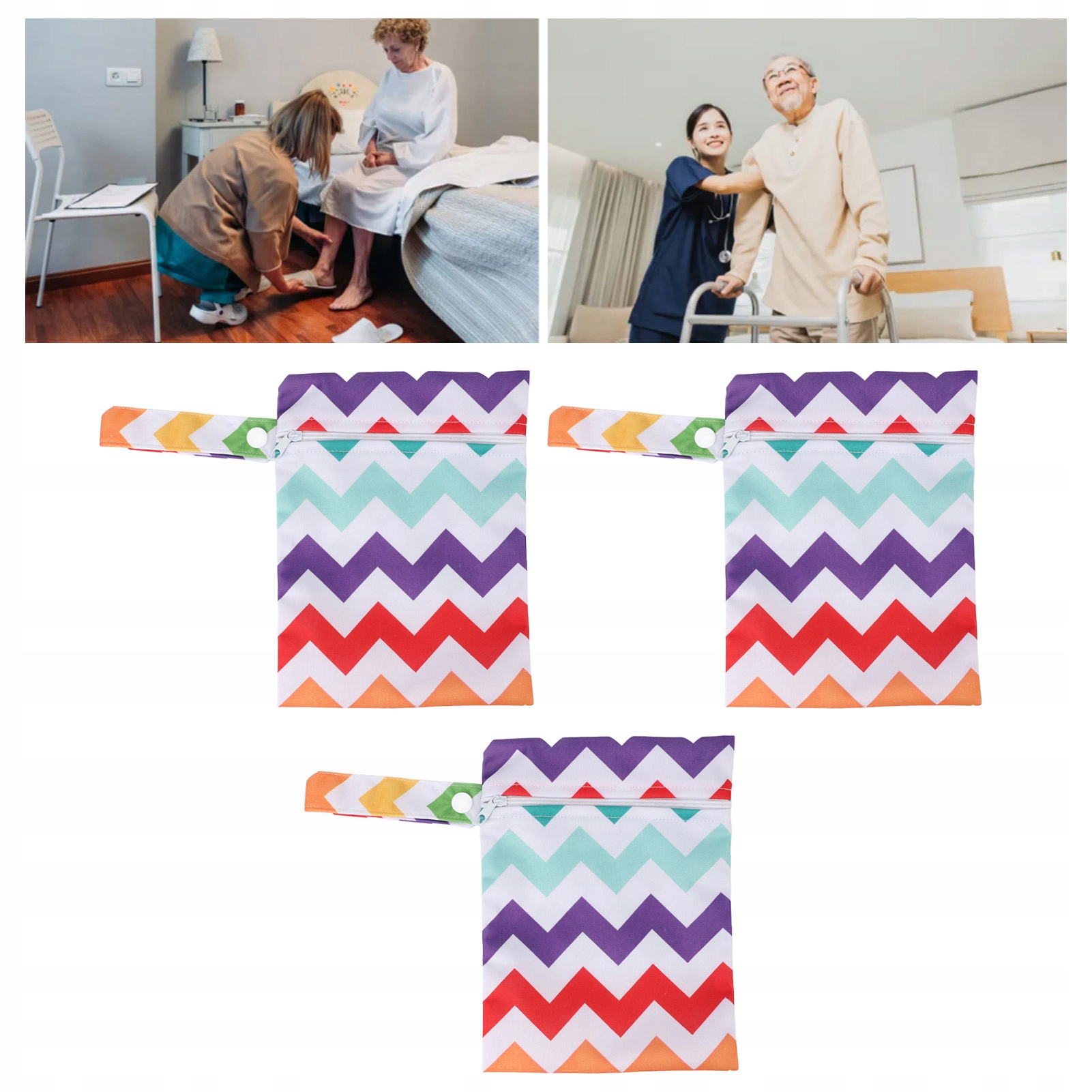 3 шт. Сумки для мокрых и сухих подгузников Водонепроницаемая многоразовая сумка с застежкой-молнией и ручкой из ткани с принтом Сумки для мокрых и сухих подгузников для купальных костюмов Мокрая одежда B10
