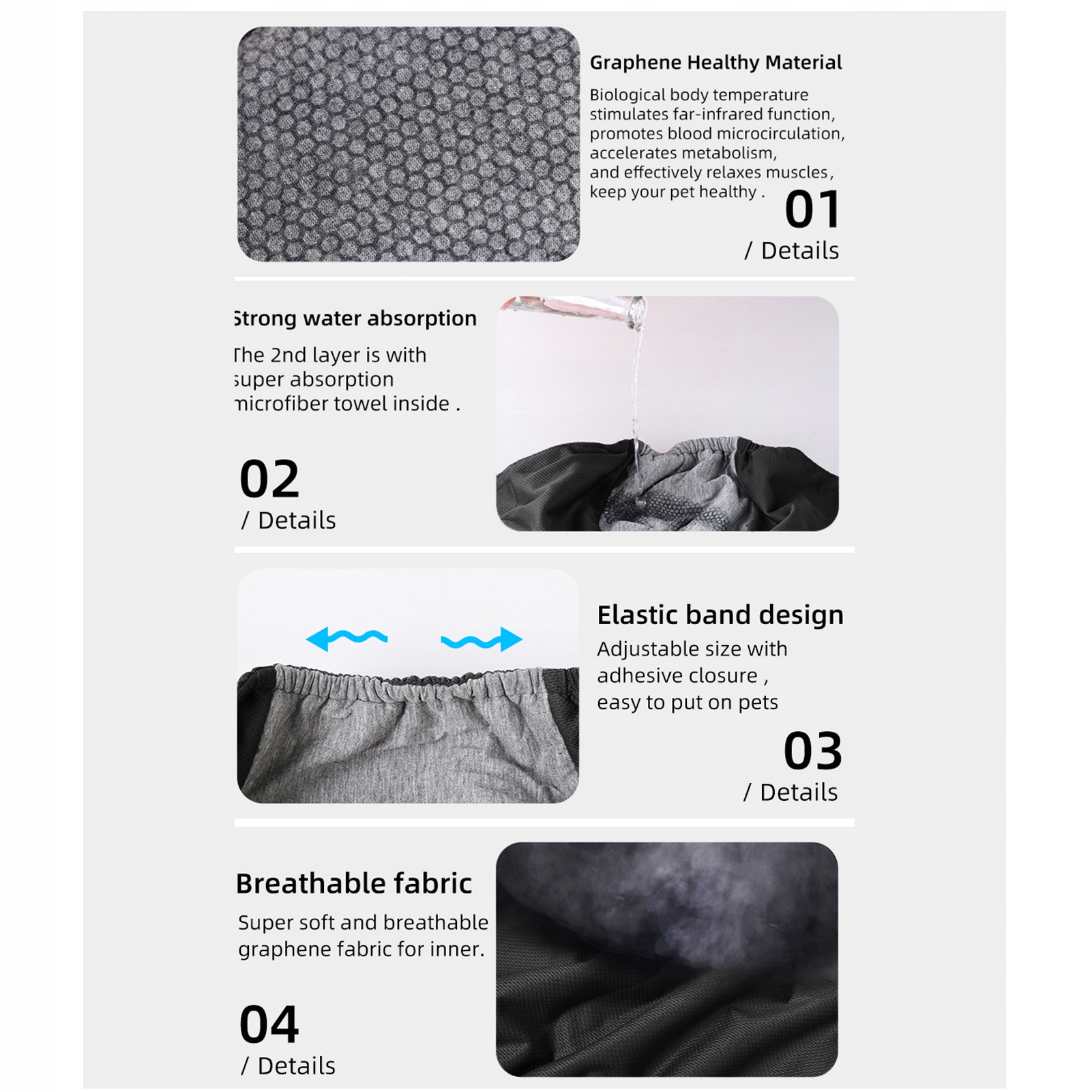 - Удобный и дышащий материал: изготовлен из графена + полиэфирного волокна + восстановленного оптического волокна + эластичного волокна, мягкий и дышащий, более удобный для собак.