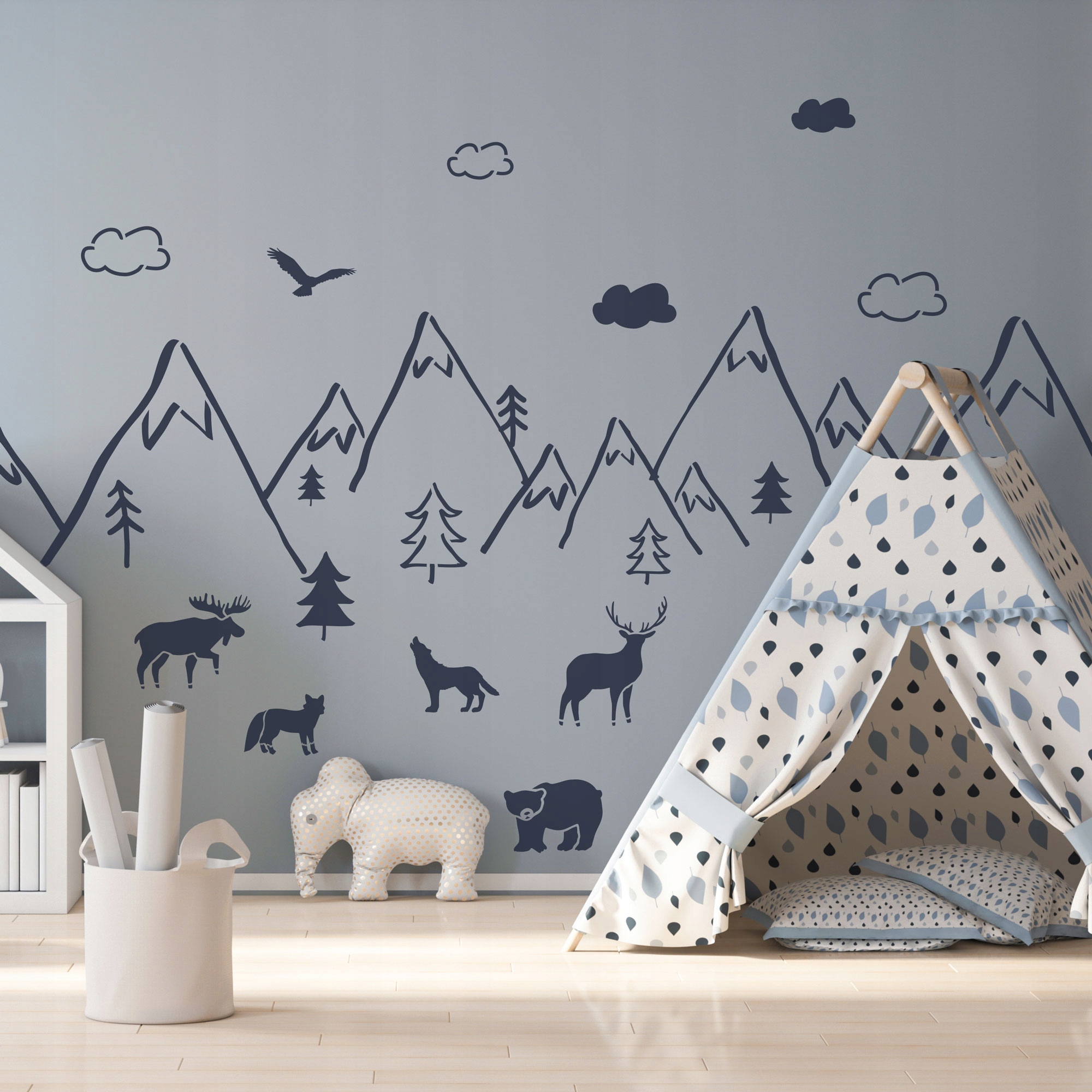 Nakleo Kids Collection представляют собой наборы из четырнадцати трафаретов из прочного пластика, состоящих из листов разного размера (самый большой 34х34см). Шаблоны можно использовать любое количество раз, поэтому вы легко сможете покрыть даже самые большие стены любой композицией узоров и цветов. Дайте волю своему воображению и порадуйте себя и своего ребенка. Отправьте своего ребенка в приключенческое путешествие в горы. Вместе разбейте лагерь на лоне природы и познакомьтесь с нежными лесными обитателями.
