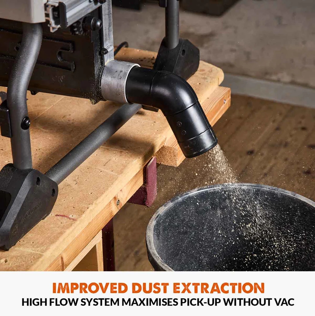 Более эффективный двигатель 1800 Вт оснащен функцией мягкого запуска, электронным лезвием, защитой от перегрузки двигателя и аварийным переключателем. Новый корпус двигателя обеспечивает лучшее всасывание пыли, более легкий доступ к очистке, а замена лезвия проще, чем когда -либо прежде.