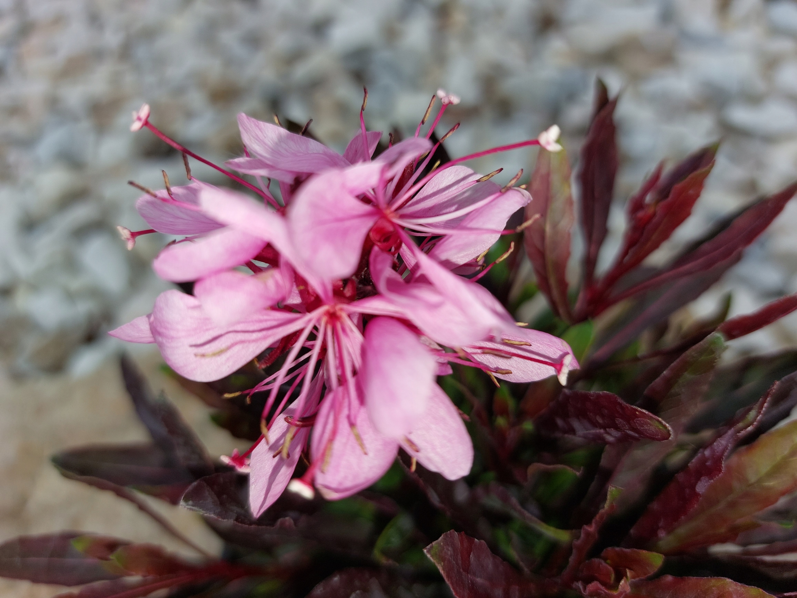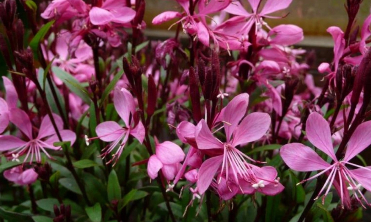 Многолетник гаура цветет все лето бурей сажистых цветов.
