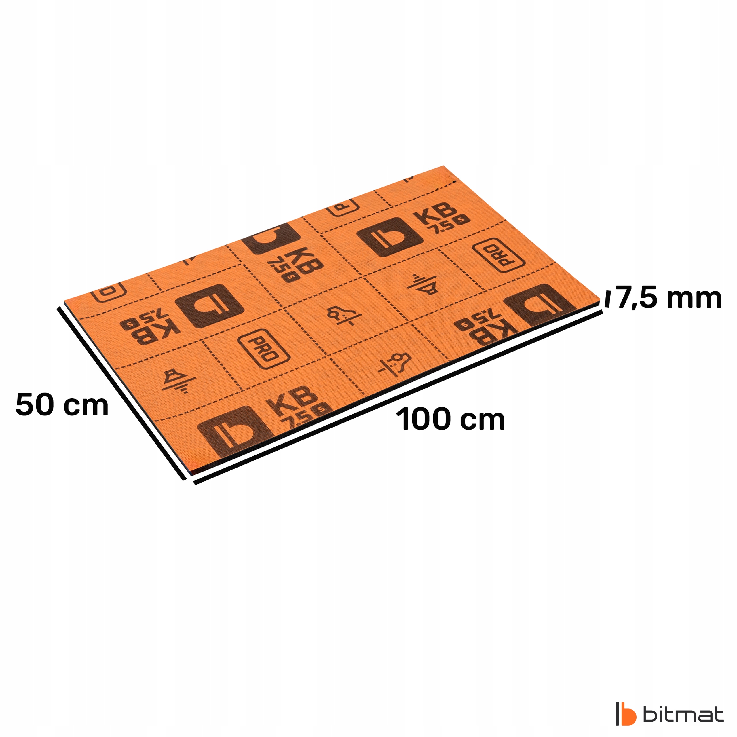 Bitmat KB7.5s — автомобильный шумоизоляционный коврик премиум-класса, предназначенный для профессиональной шумоизоляции салона автомобиля. Это многослойный акустический мат толщиной 7,5 мм, сочетающий в себе бутиловую акустическую мембрану и вспененную резину с закрытыми порами. Продукт, используемый в качестве второго слоя звукоизоляции, эффективно блокирует дорожный шум, шум шин и внешние звуки, одновременно улучшая теплоизоляцию салона.