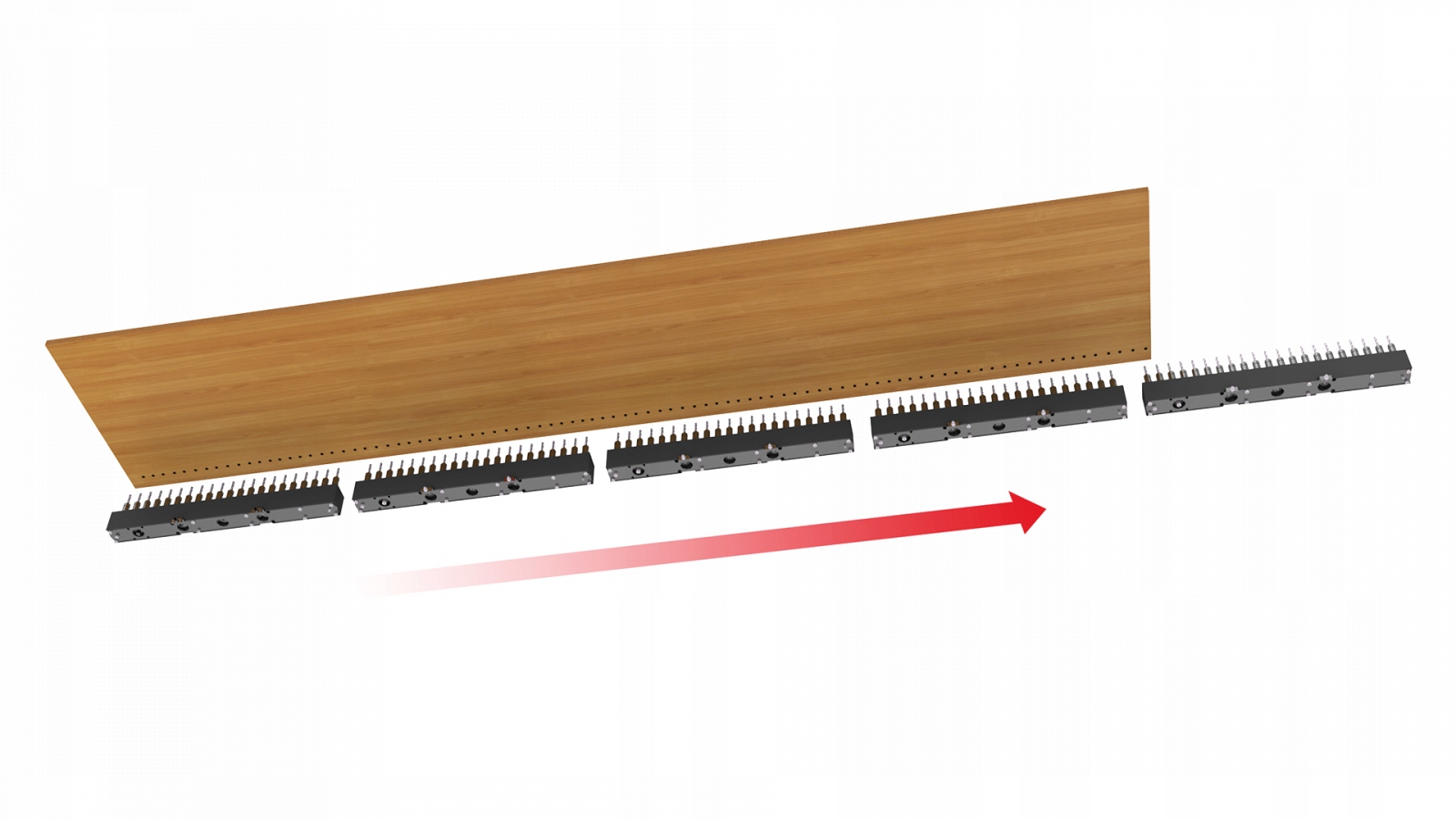 Благодаря расстоянию между осями 640 мм и большому рабочему столу можно одновременно обрабатывать 2 панели шириной 316 мм.