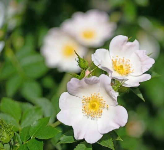Кустарник высотой до 3 м, ветви изогнуты к земле. Ветки с сильными крючкообразными шипами. Шиповник – весьма изменчивый вид. Цветки одиночные, белые, от бледно-розовых до светло-розовых, не очень крупные. Цветет в июне. Любит солнечные и полутенистые места. Нетребователен к почве. Съедобные фрукты. Кустарник, используемый в приусадебных участках, парках, при мелиорации и в общественных местах. Богатый источник витамина С.