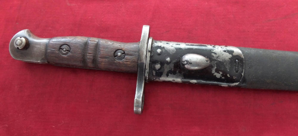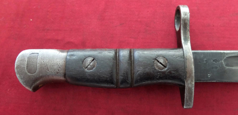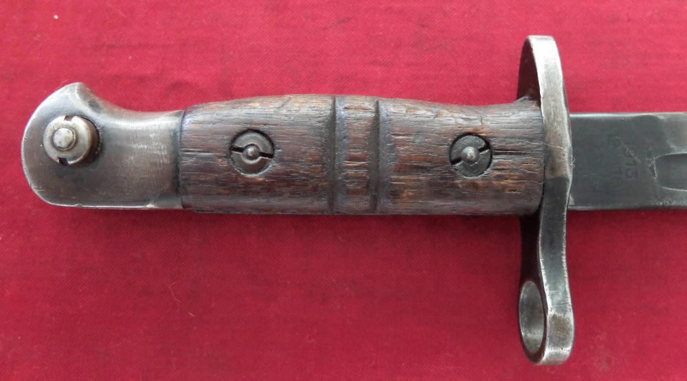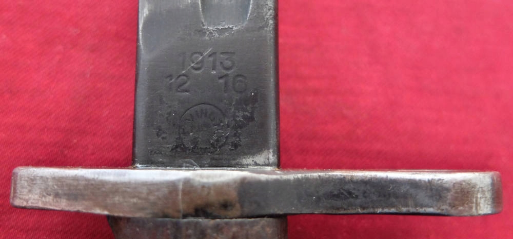 Предмет, видимый на фотографиях, очень хорошо сохранился. Лезвие не заточено, заводская заточка. На пороге клинка по кругу выбита маркировка 1913 12 16 и REMINGTON (модель 1913 г., изготовлена в декабре 1916 г., завод Ремингтон). С другой стороны, основная аудитория – британцы. Накладки на ручки деревянные и оригинальные. Байонетный замок работает.