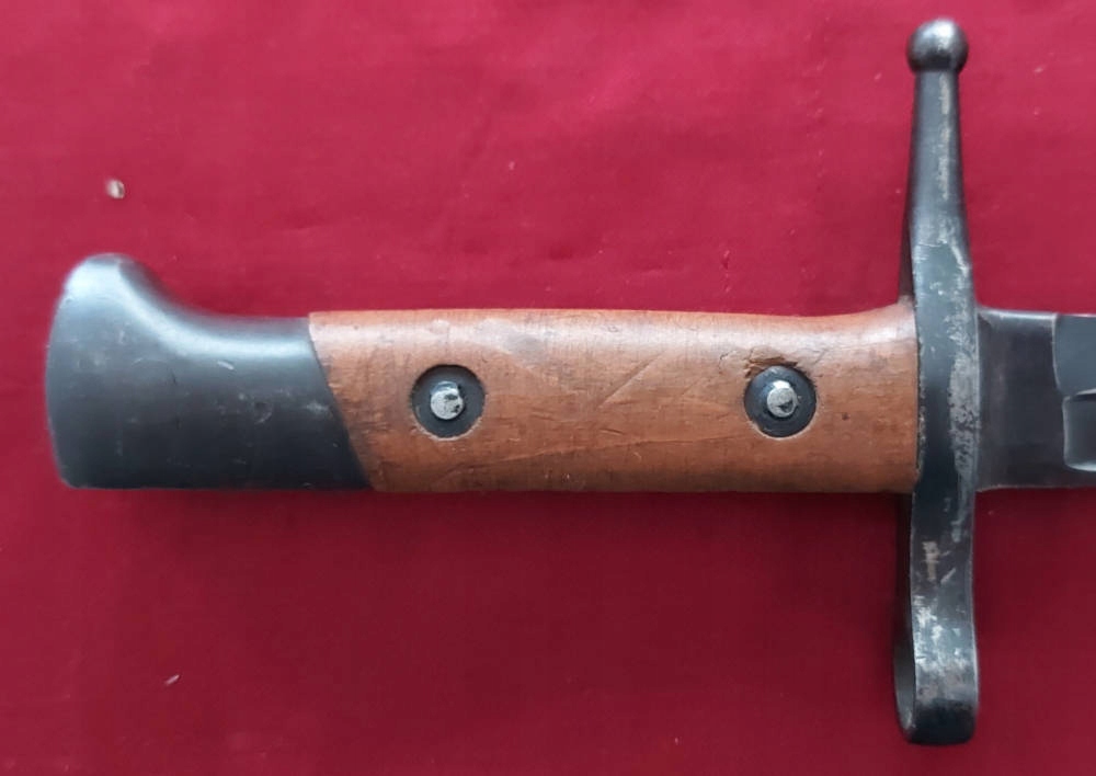 Тема продажи - итальянский байонет WZ. 1891 - Carcano. Клинок, затопление заводов, только на ручке имеет несколько царапин. Сохранение почти полностью является оригинальным оксидом. Облицовка ручки деревянная, оригинальная. Замок штыка функционален. На JELC подпись C.Nutti 1942 . Кожа в очень хорошем состоянии. Оригинальный шов сохранился. Клинок хорош во влагалище. Длина влагалища 31.8см,