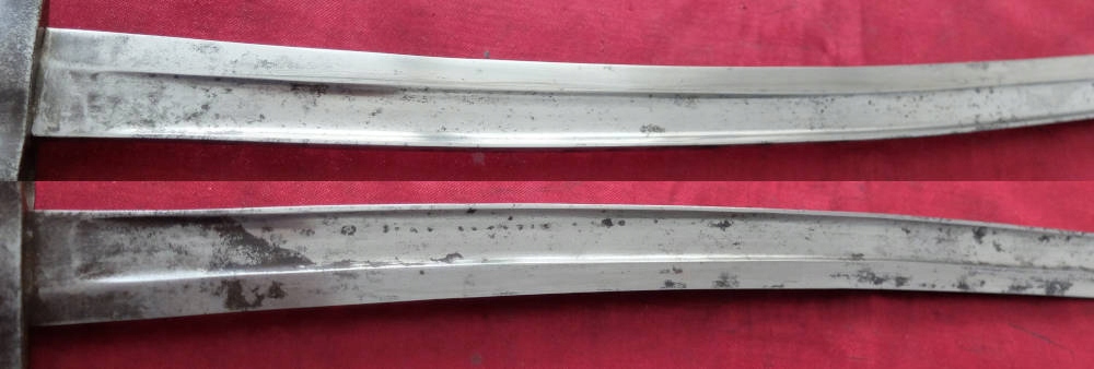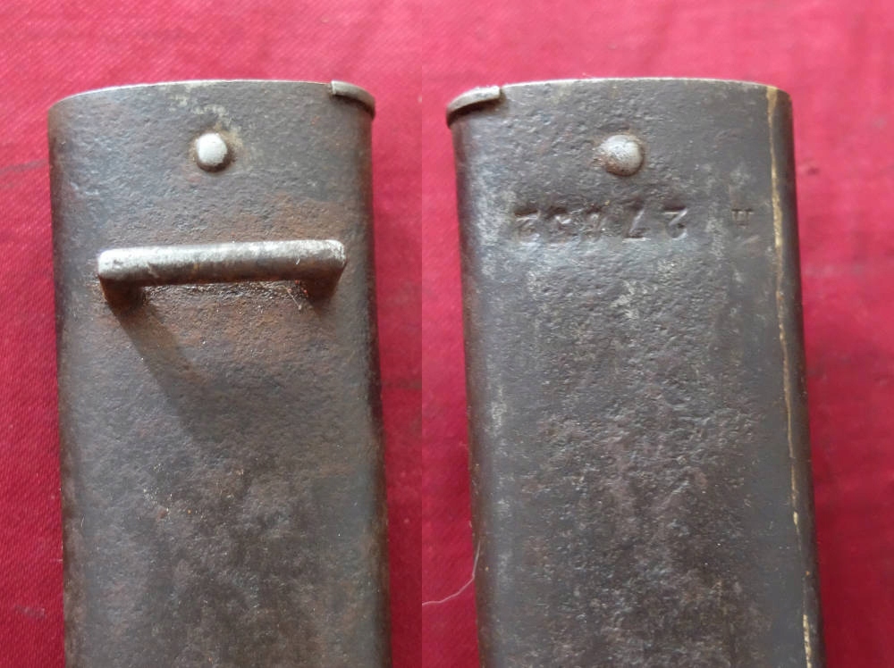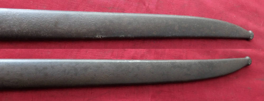 Экземпляр, видимый на фотографиях, хорошо сохранился. Лезвие не заточено и не заточено, местами имеет небольшие поверхностные пятна коррозии, как видно на фотографиях, в основном с одной стороны. Ручка латунная. Байонетный замок работает.
