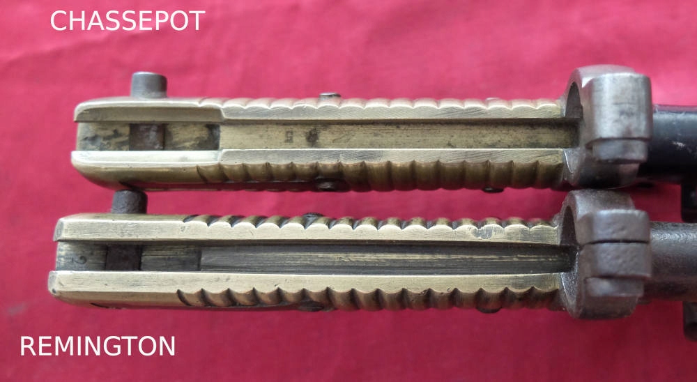 Штык очень похож на штык Chassepot 1866 года, отличие состоит в отделке направляющей рукоятки и кольца цевья. Причем штыки этого образца никогда не имели надписи на тыльной стороне клинка.