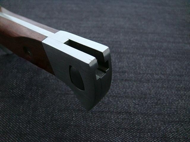 b>из стали и деревянной обшивки идеально лежит в руке.➡️ Широкая стальная крестовина, помимо классической функции защиты руки от соскальзывания в сторону лезвия, имеет кольцо для установки на ствол винтовки.