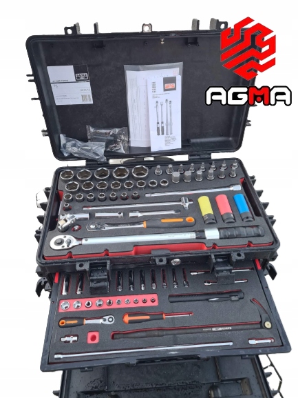 1. ЯЩИК (крышка): Наконечники торцевых ключей 1/2 дюйма, шестигранные, размеры ключей 8, 9, 10, 11, 12, 13, 14, 15, 16, 17, 18, 19, 21, 22, 24. 27, 28, 30, 32, 34, 36 мм и шестигранные биты 1/2 дюйма 8, 10, 12, 14, 17, 19 мм и биты-шестигранники 1/2 дюйма TX-25, TX-27 , TX-30, TX-40, TX-45, TX-50, TX-55, TX-60 И рукоятка с храповым механизмом с рычагом изменения направления 1/2 дюйма. Узкая трещотка с 80 зубьями и крестообразная рукоятка 1/2", 283 мм, глянцевая, удлинитель 1/2". 125 мм I удлинитель 1/2", 250 мм I переходник с 1/2" на 3/8", 37 мм I карданный шарнир 1/2", 72 мм I механический динамометрический ключ для измерений в диапазоне 40-200 Нм I торцевой ключ ударный инструмент 1/2"-17, 19, 21 мм