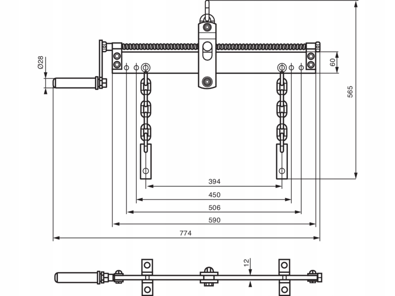 Высококачественная сварная цепь (Ø7,5 мм) и прочные крепежные пластины.