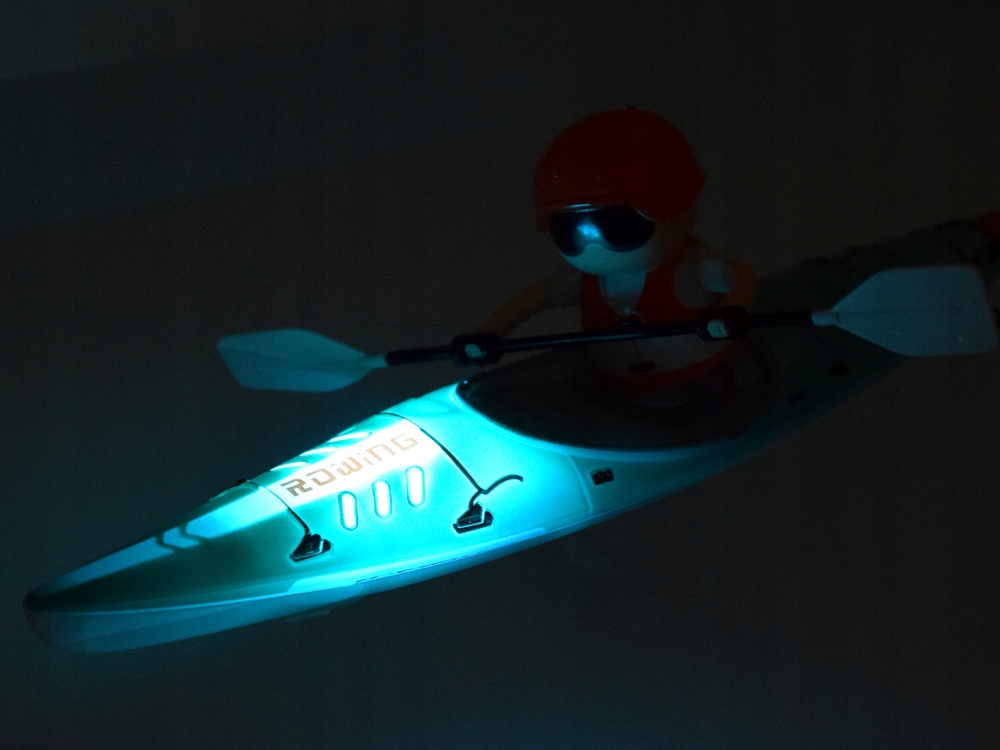 - Байдарка с гребным управлением на дистанционном управлении – идеальная игрушка для маленьких любителей приключений на воде! Оснащенный пультом дистанционного управления, он позволяет контролировать направление движения каяка, обеспечивая полный контроль над удовольствием. Дополнительно каяк имеет эффектную подсветку, которая добавляет привлекательности при игре в сумерках. Реалистичная фигурка гребца перемещает весла в ритм движения каяка, что делает игрушку еще более интерактивной и увлекательной. Пластиковая конструкция и водонепроницаемые материалы гарантируют долгие часы веселья как дома, так и на природе.