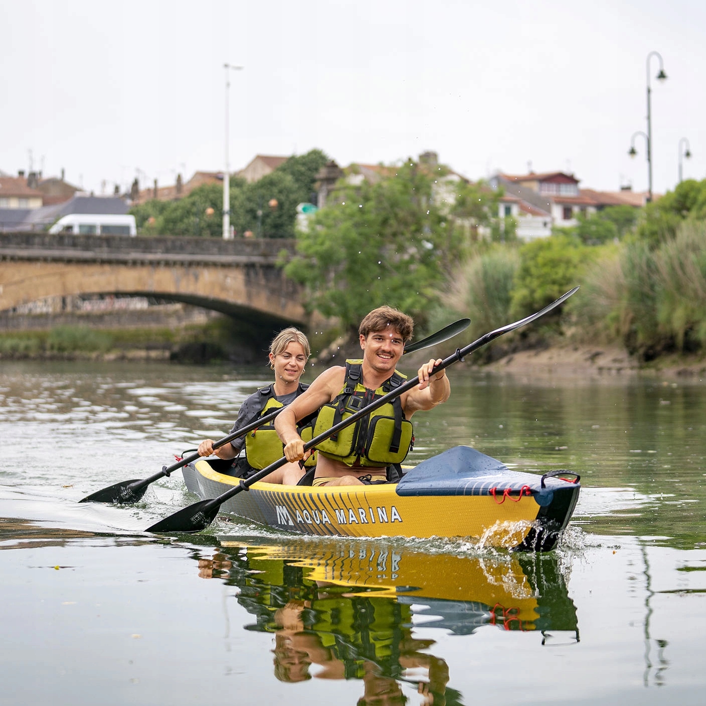 Серия пневматических каяков tomahawk бренд Aqua Marina характеризуется полной производительности в технологии Drop-Stitch Lite . Это означает, что как пол, так и боковые стороны сделаны из тысяч мелких полиэфирных волокон, которые после надувания до соответствующего давления образуют жесткую и устойчивую структуру. Благодаря этому каяк имеет аналогичные плавные параметры с «жесткими» традиционными каяками, и в то же время примерно на 40% легче их . Кроме того, после слива воздуха и упаковки в сумке он поместится в каждом багажнике или на заднем диване автомобиля. Air-K 440 широко используется. Вы можете плавать по нему как в спокойных водах, так и в быстрых реках. Это чрезвычайно быстрый каяк для продвинутых и промежуточных гребцов. Заполненный в форме «V» накачированных шариков «V» на корме и клюва и два легко съемных finy Slide-in , сделайте его моделью, которая необычно сочетает в себе скорость, маневрирование и стабильность. Чтобы повысить безопасность во время отдаленных поездок, каяк изготовлен из трех отдельных камер. Тем не менее, нет весла, которые вы можете купить на других наших аукционах. два складных, съемные сиденья с высокими спинами, губчатая подушка и много карманов для ручного багажа позаботятся о достаточном комфорте и положении. Каяк имеет транспортные ручки, клапан, который облегчает дренаж воды от корпуса и регулируемый подход